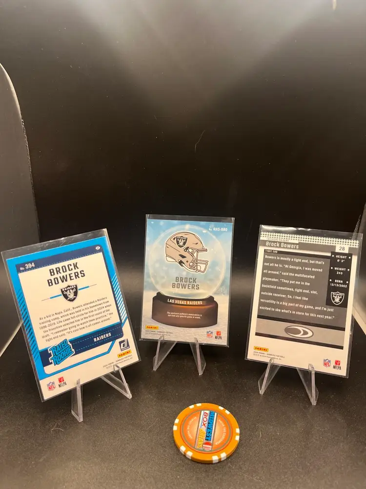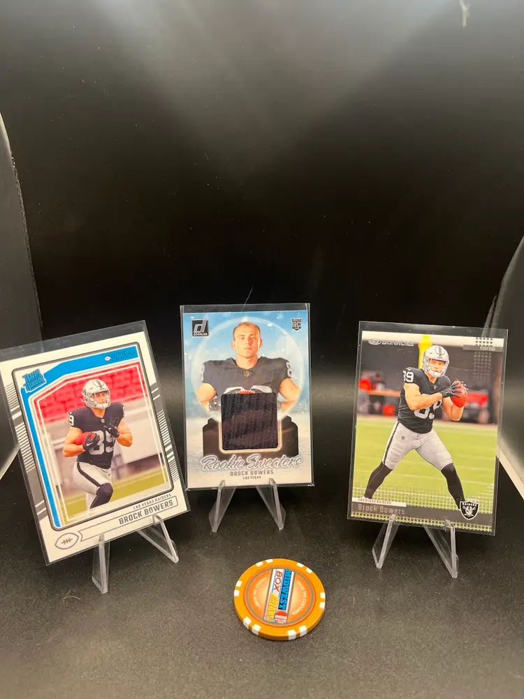 This is a 3-card Brock Bowers lot from Donruss. Holiday sweater patch, rated rookie, other Rookie