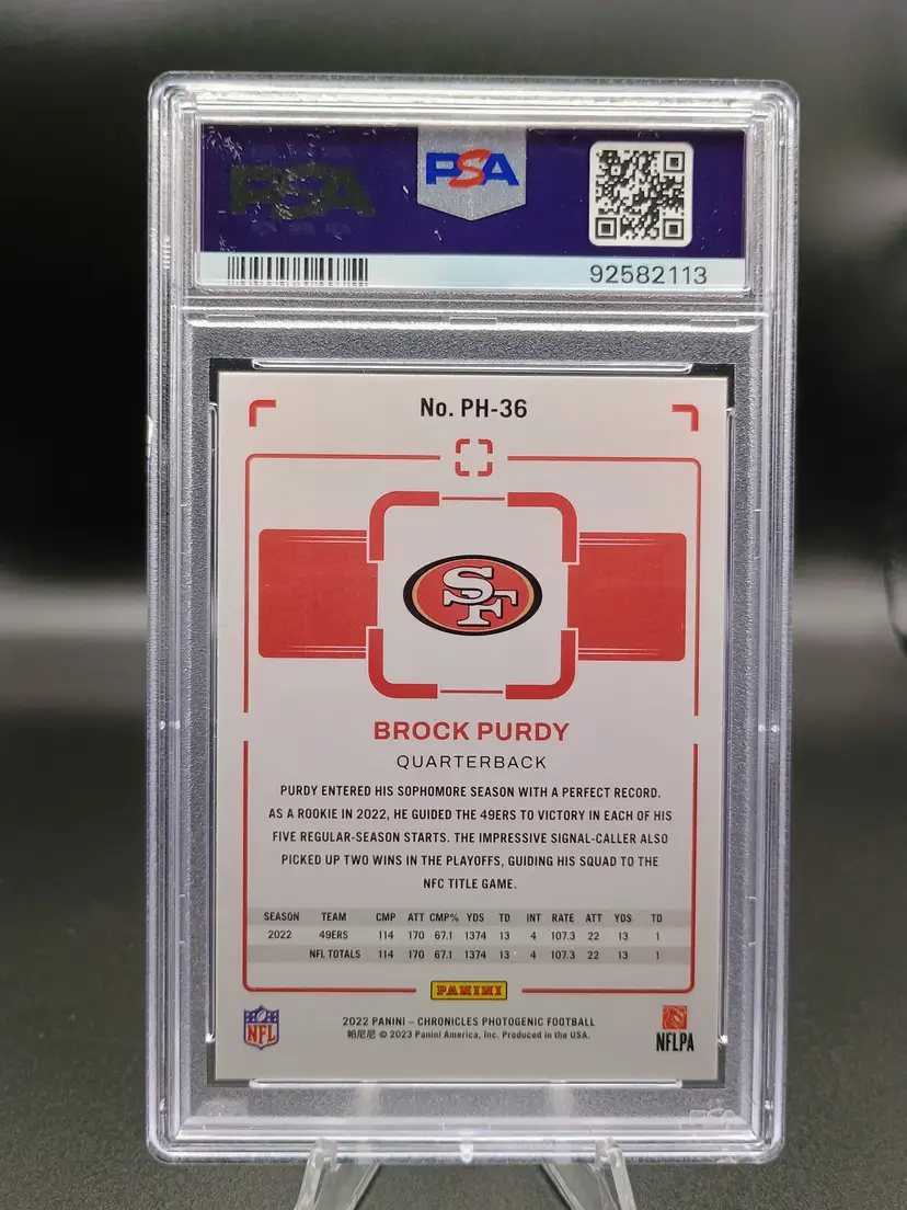 Brock Purdy 2022 Panini Chronicles Photogenic Rookie (RC) PSA 9