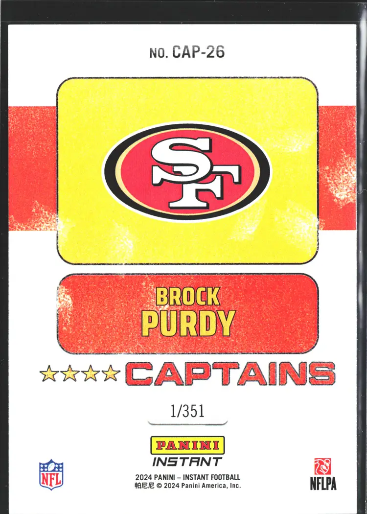 1st time buyer? Get $5 Off with code DISTRICT5 at checkout! Card as shown. All cards $20 and under ship PWE via lettertrackpro [https://www.letter-track.com/registerap.asp?AFID=8757] Type: Sports Trading Card League: National Football League (NFL) Sport: Football Player/Athlete: Brock Purdy Set: 2024 Panini Instant NFL Manufacturer: Panini Features: Limited Edition, Serial Numbered Season: 2024 Autographed: No Year Manufactured: 2024 Vintage: No Graded: No Team: San Francisco 49ers Material: Card Stock Original/Licensed Reprint: Original Country/Region of Manufacture: United States