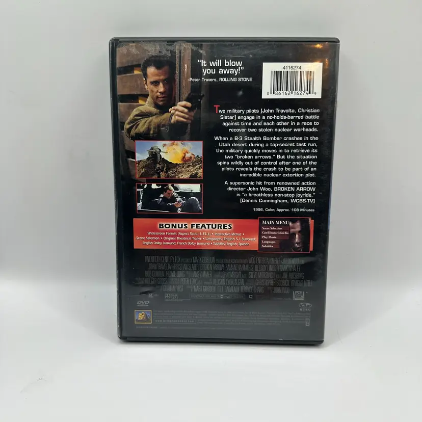 Broken Arrow.Features: • John Travolta • Christian Slater