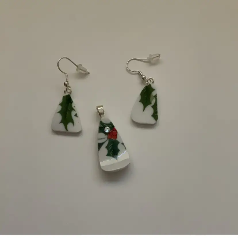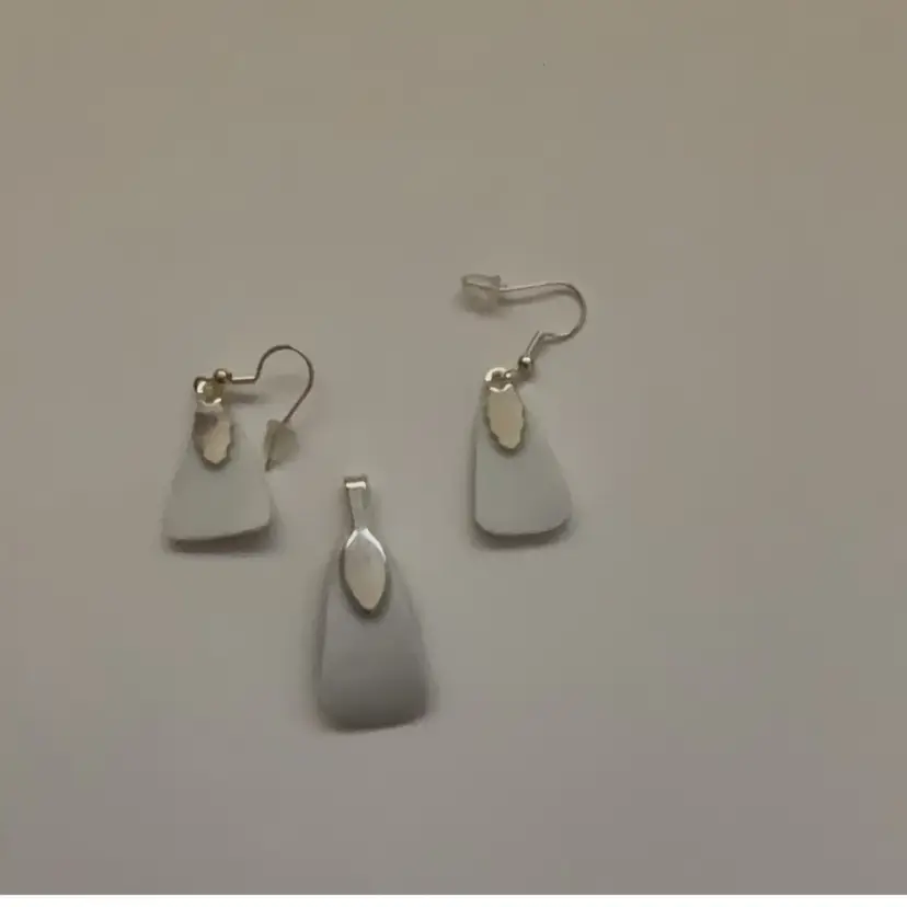 Pendant 1 1/2” long. 1/2” w Earrings 1” long 1/2” w