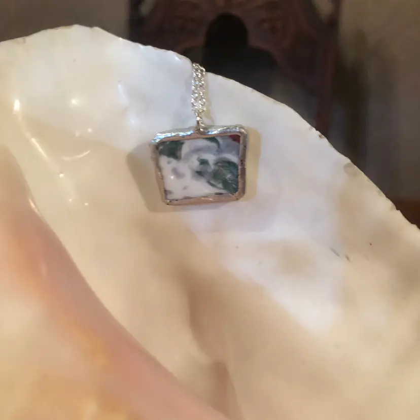 This delightful pendant transforms broken pottery into wearable art! This handcrafted necklace celebrates the charm of imperfect beauty. Collectors and holiday enthusiasts alike will adore this one-of-a-kind piece that tells its own story. Measuring 1" x 3/4", it's perfectly sized for everyday styling. Playful, meaningful, and utterly unique—because the best treasures are the ones with character and soul.