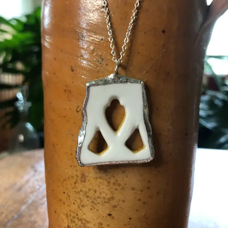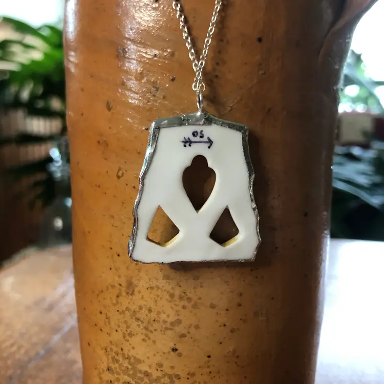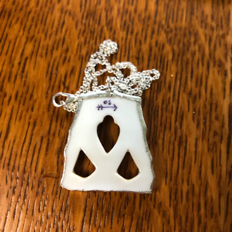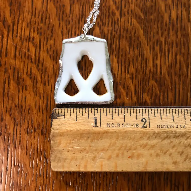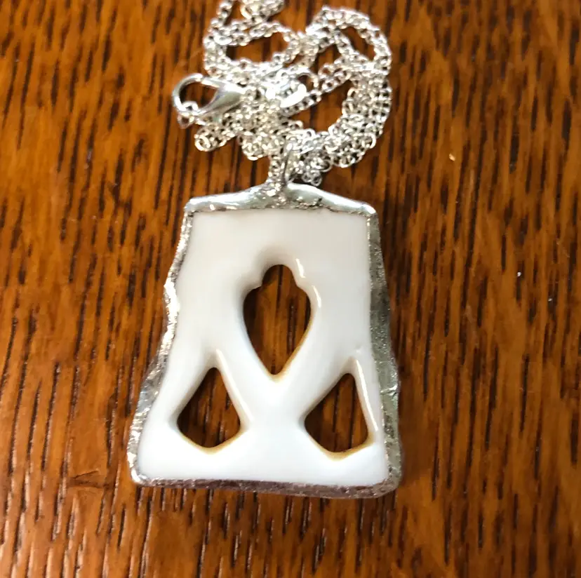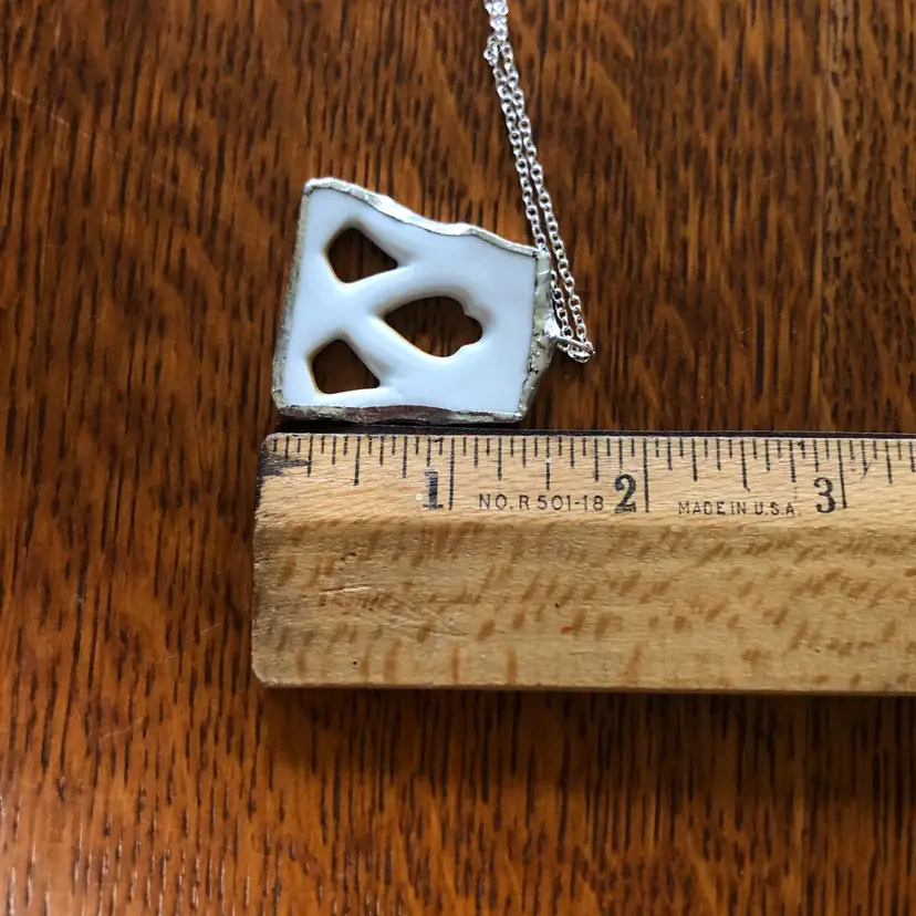 Add a quirky touch to your outfit with this artisan-made reticulated plate pendant necklace. Handcrafted from unique broken pottery, this 1.25 by 1.5-inch charm brings a playful twist to your style—perfect for those who love jewelry with character and a story to tell!