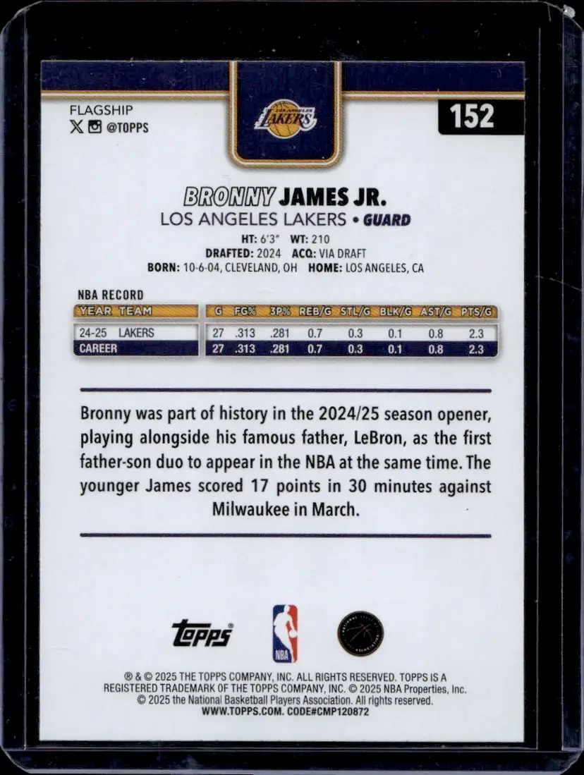 Add this Bronny James Jr. card to your collection from the Topps Lakers series. Numbered 056 out of 299, it's perfect for Lakers fans and basketball card enthusiasts.