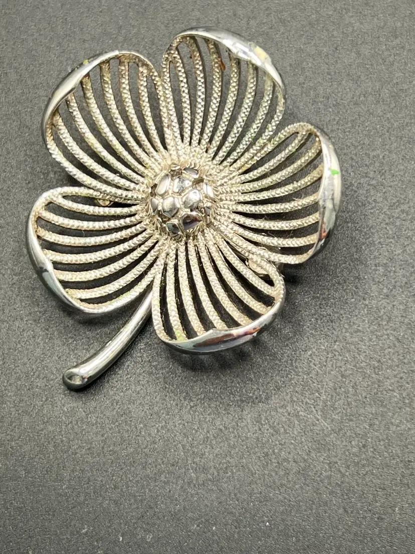 Description: Vintage Signed MONET Brooch Silver Plated Open Wire Dogwood Floral NC State Flower RARE to find the silver Monet flower