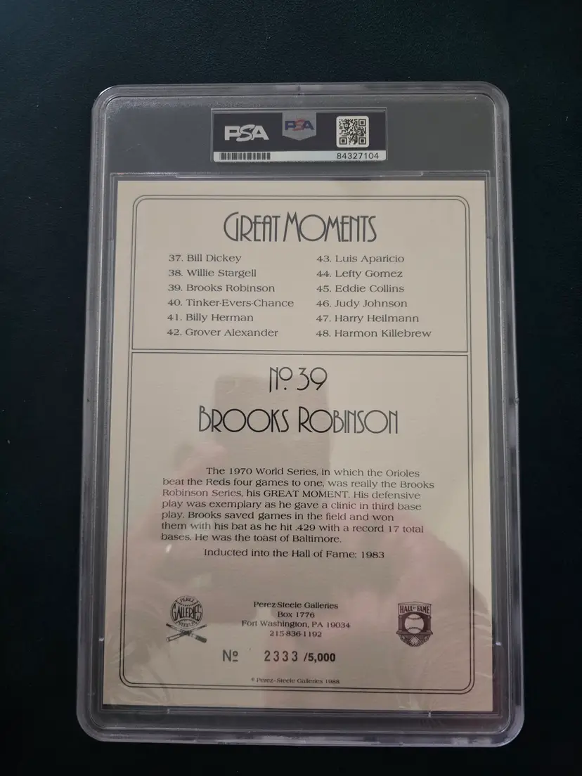 Brooks Robinson autographed Perez-Steele "Great Moments" art numbered 2333/5000. Authenticated auto by PSA. Will be shipped boxed with tracking.