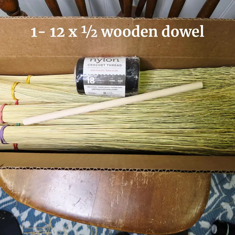 This Starter Broom Making Kit is perfect for beginners ready to explore handle‑based broomcraft and pairs beautifully with Broom Making Basics II: The Broom Sticks inside The Broom Witch Academy. You do not need to be enrolled in the course to purchase, anyone can enjoy this kit in their broommaking journey. Starter Kit Includes: • 2 lbs processed broomcorn • 1 wooden dowel • 1 spool of black #18 nylon twine • 1 large‑eye needle • 2 natural dried broom handles (20–23 inches long, approx. 1 inch diameter) bark still on, minimal processing. Each component is selected to support the techniques taught in this style of broom making, giving you the materials you need to create sturdy, beautiful brooms with confidence