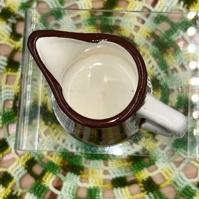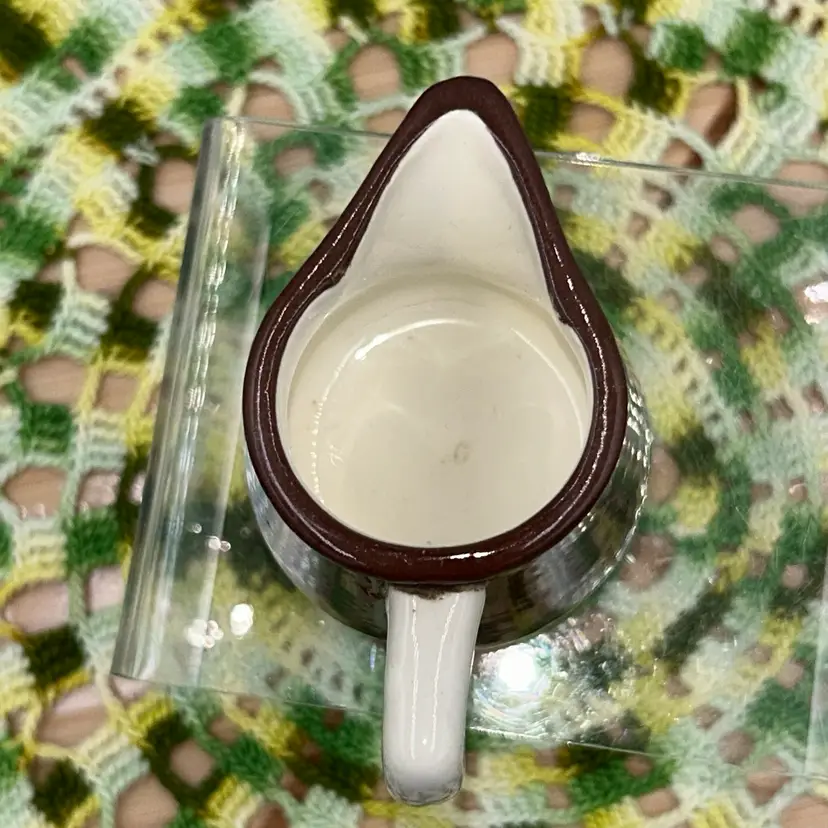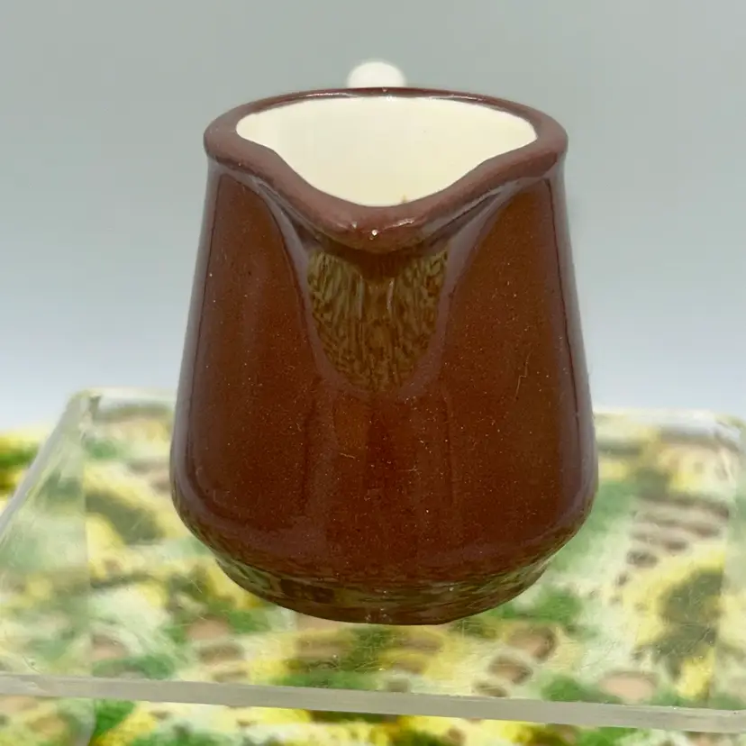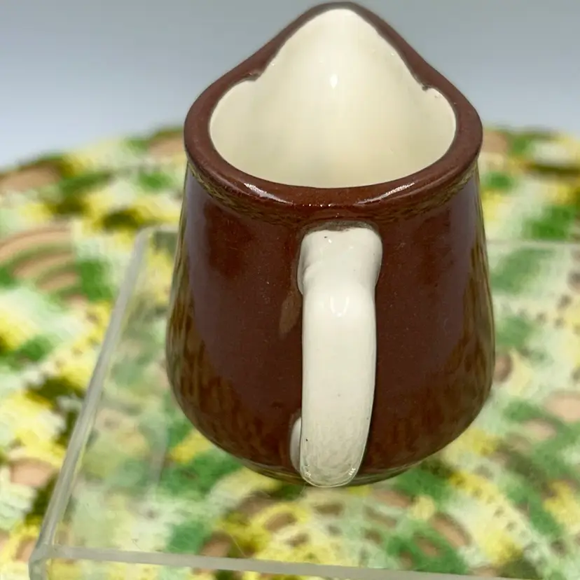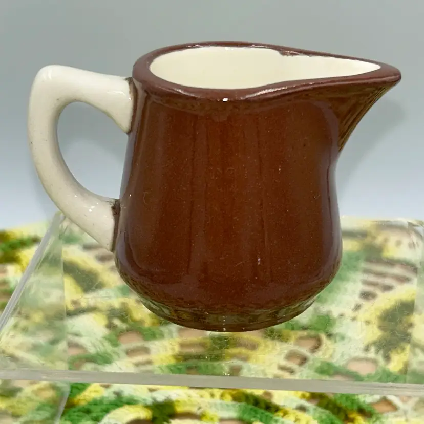 ORIGINAL PRICE: $6. 2”high, 2” diameter at bottom, 3.5” from outside of handle to outside of spout. Mini Pitcher/Creamer. No markings. No chips or cracks. Excellent shape.