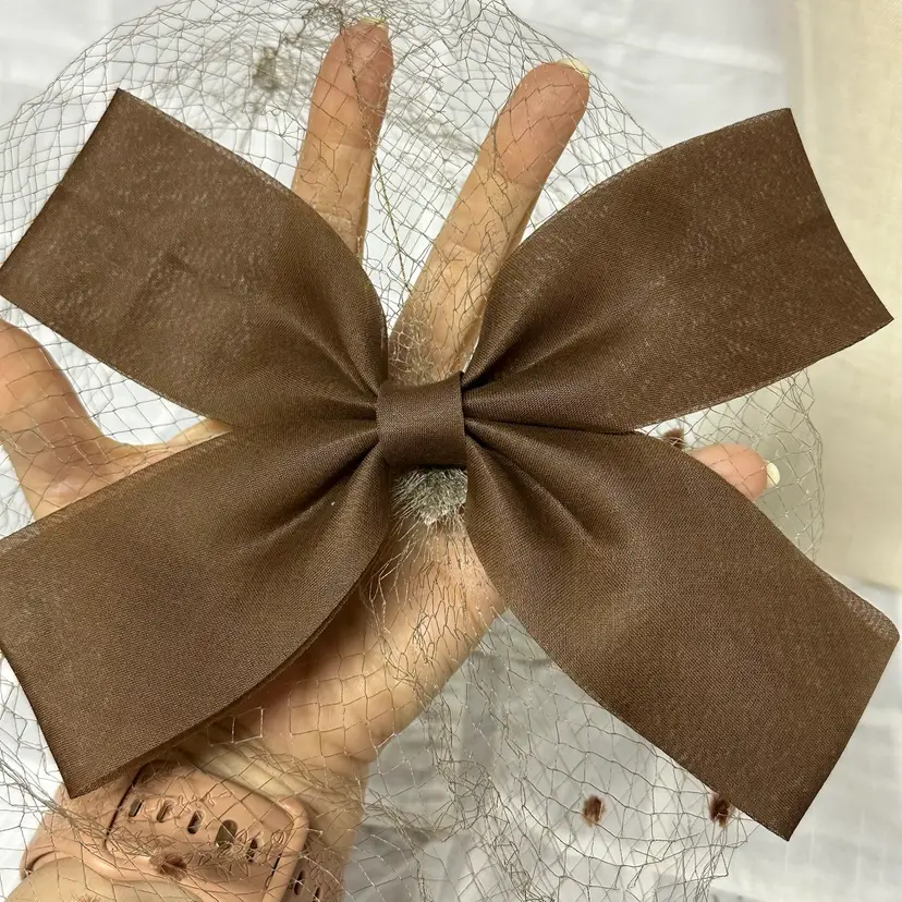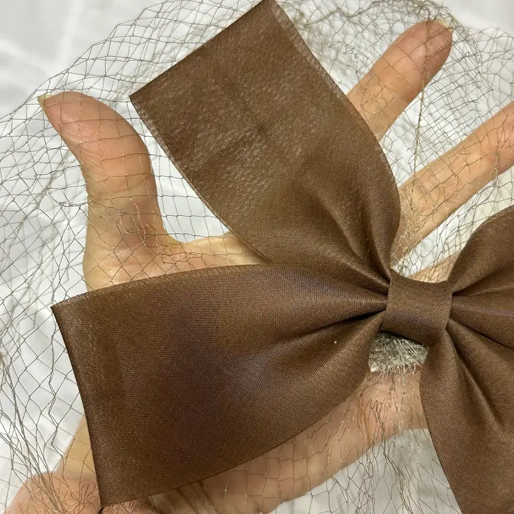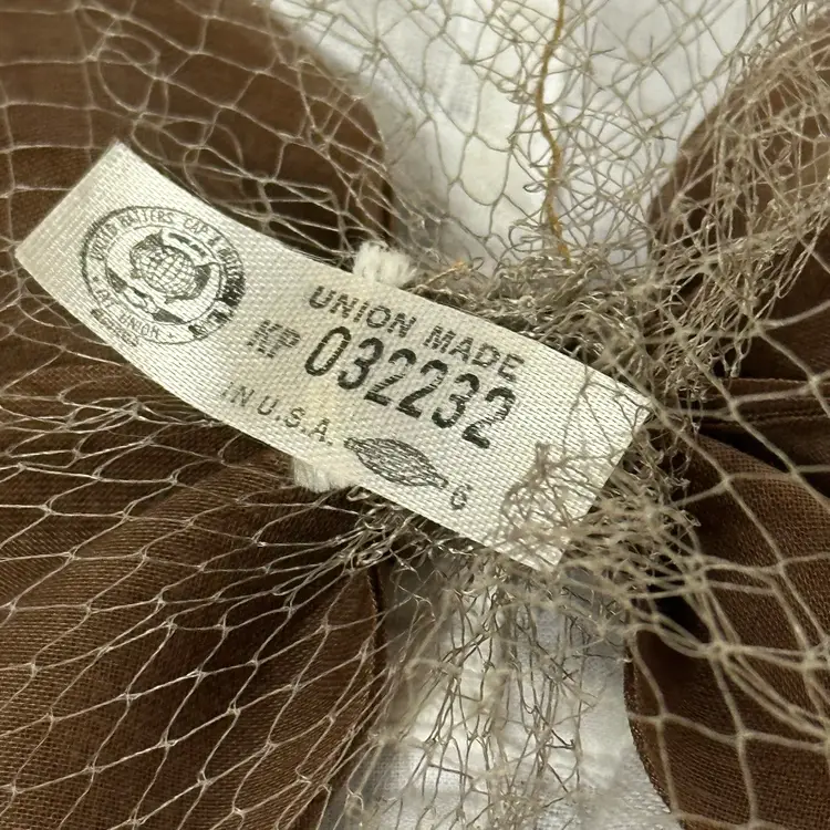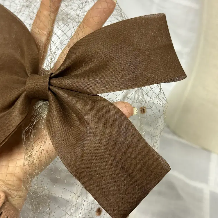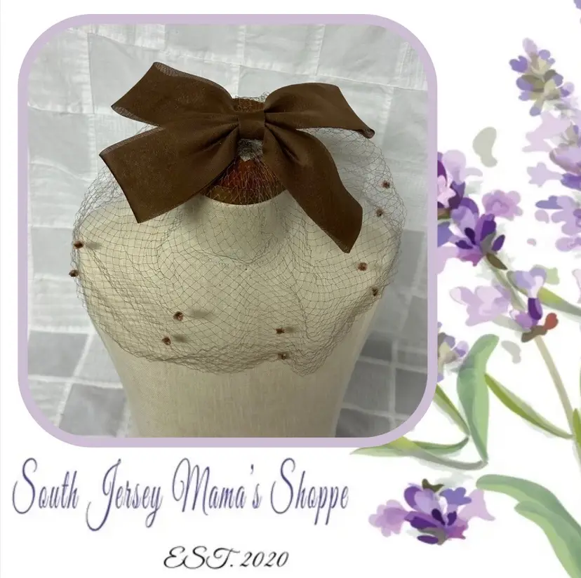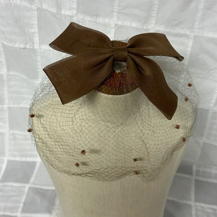 This is pretty!! I am unsure to exactly measure it, but it was in with the three other hats I have listed measuring 20.5”, so I am assuming it would fit the same. As far as I can tell, the netting is in nice shape. There are matching pom pom like pieces threaded in the netting. No staining that I can see on bow. Overall nice condition. There is no overt smell that I can smell.