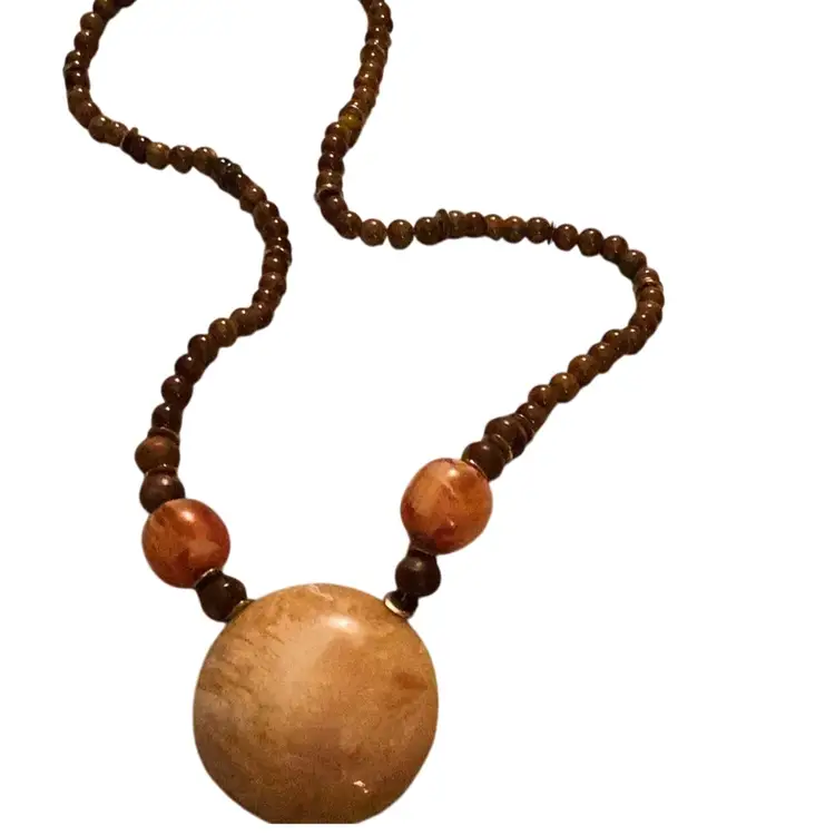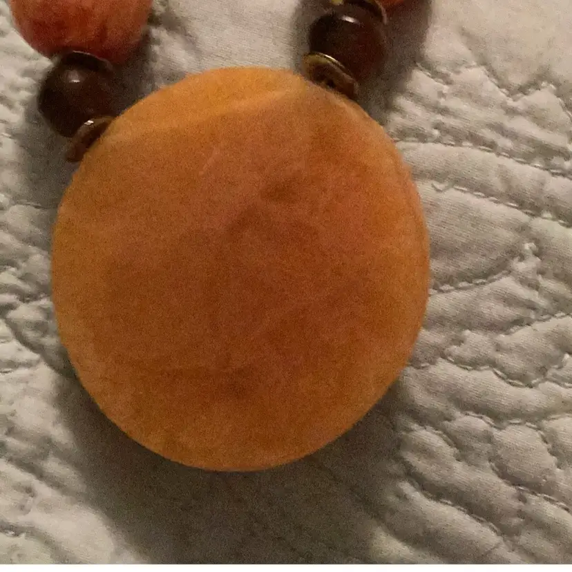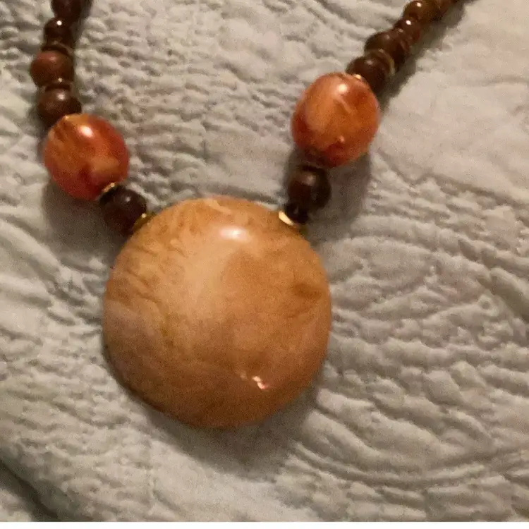 Beautiful beaded necklace focal point might be lucite or Bakelite not sure not tested.