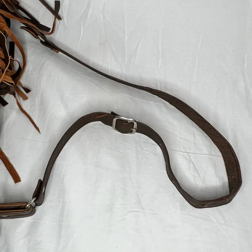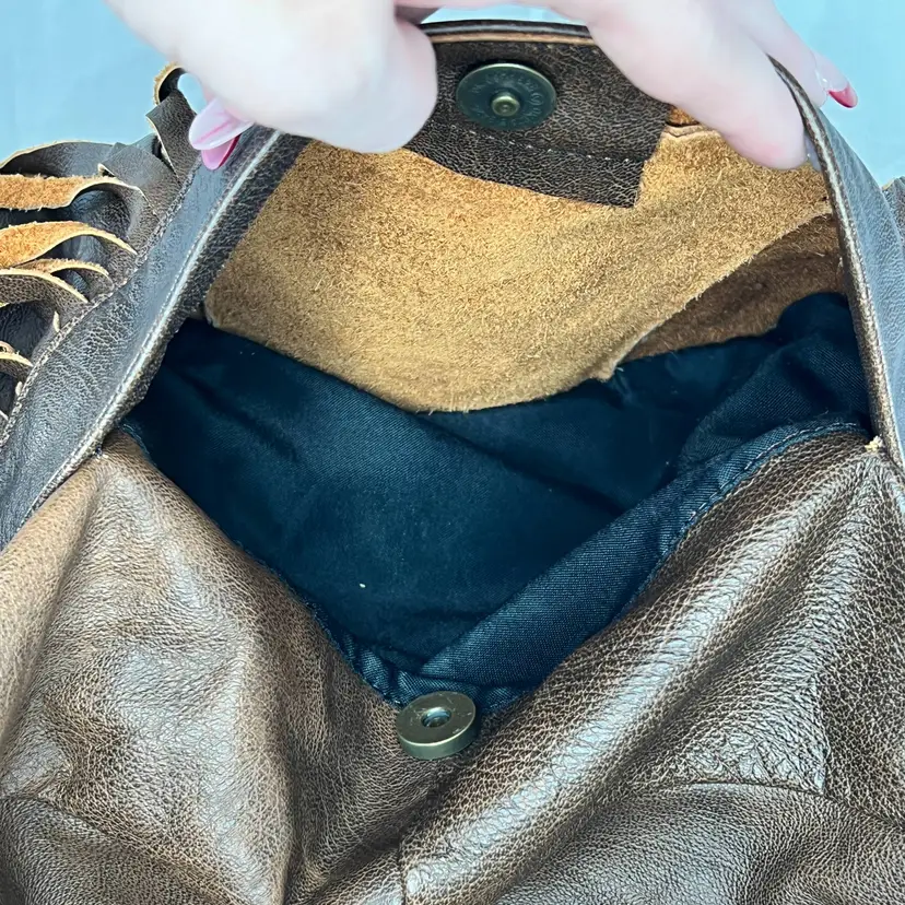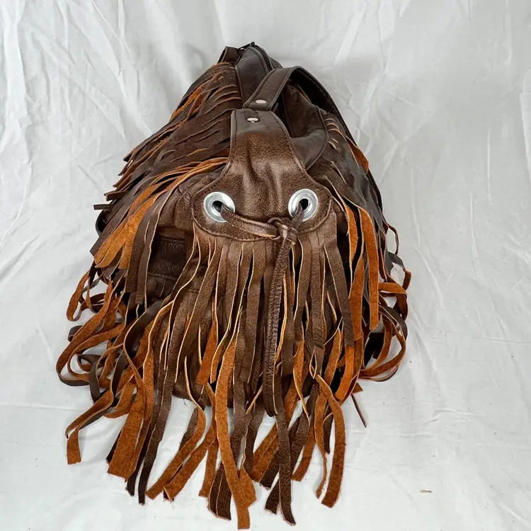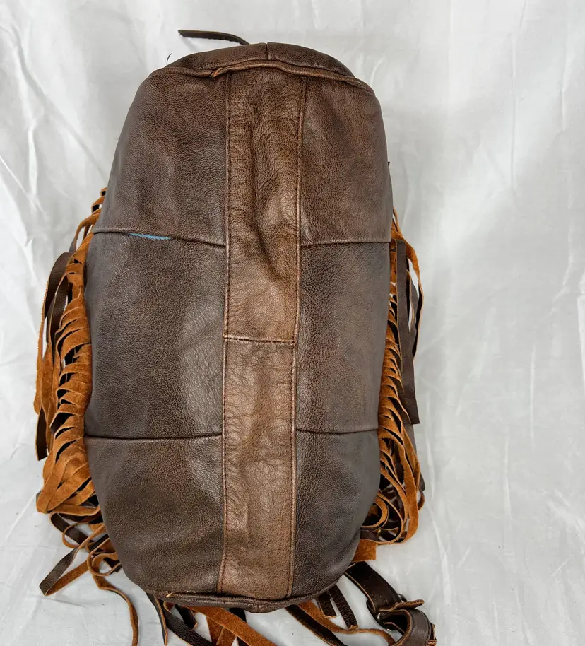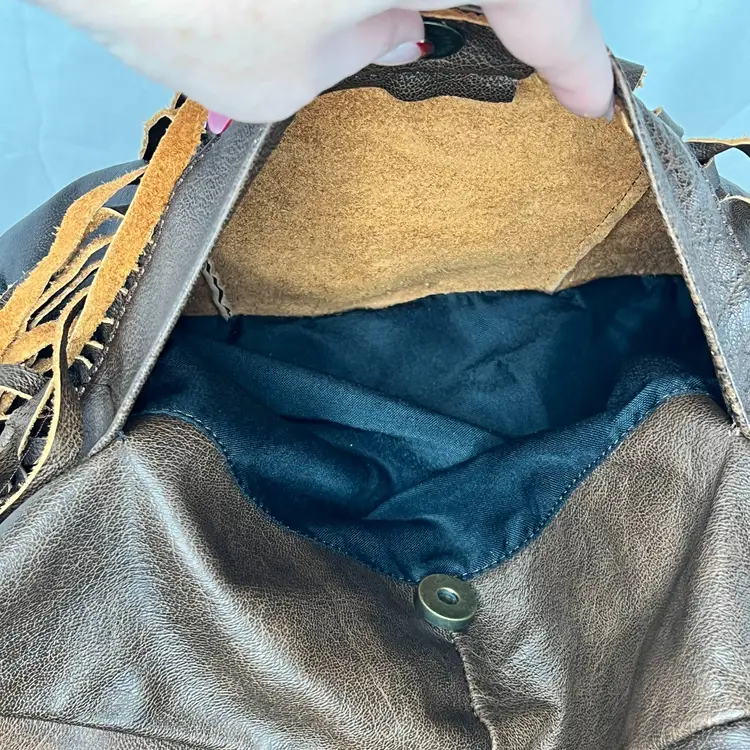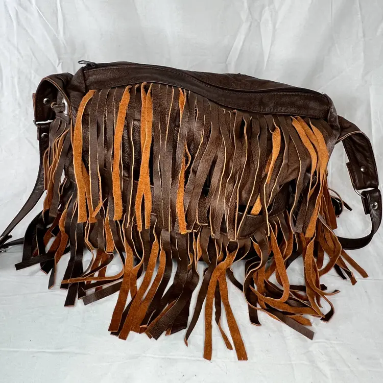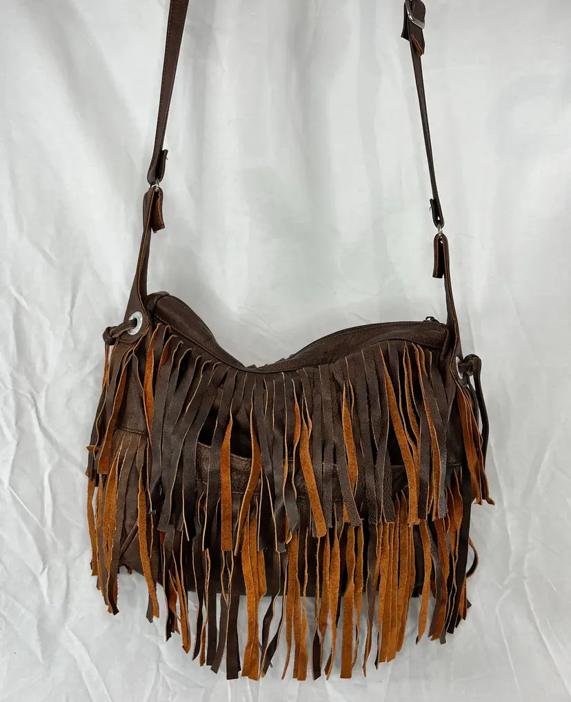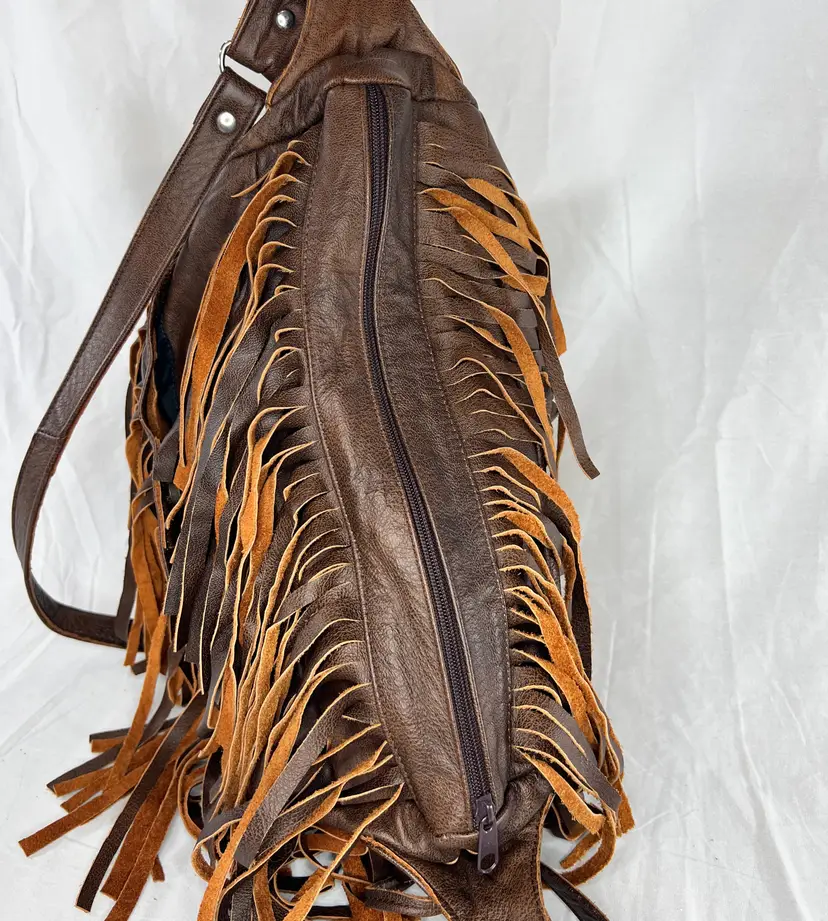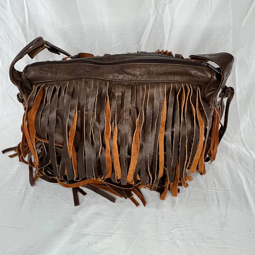 Authentic vintage leather shoulder bag with fringe detailing. Made in Mexico from genuine leather with a classic boho / western look.