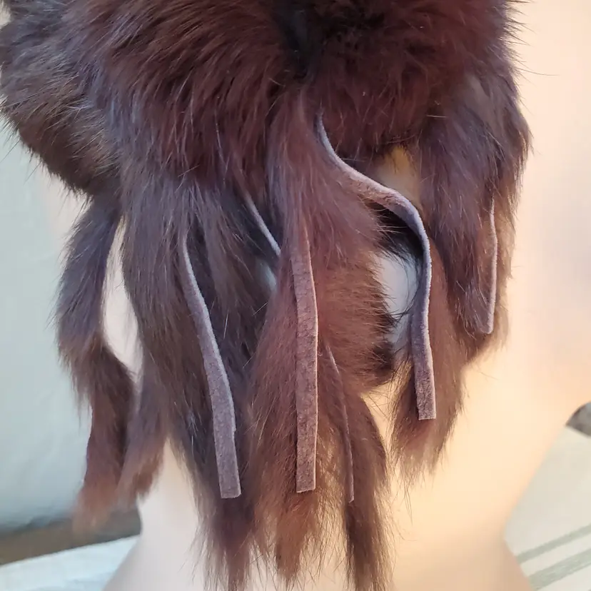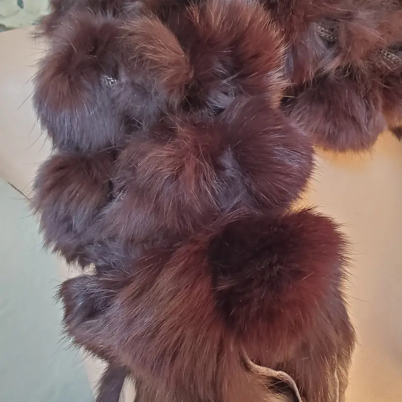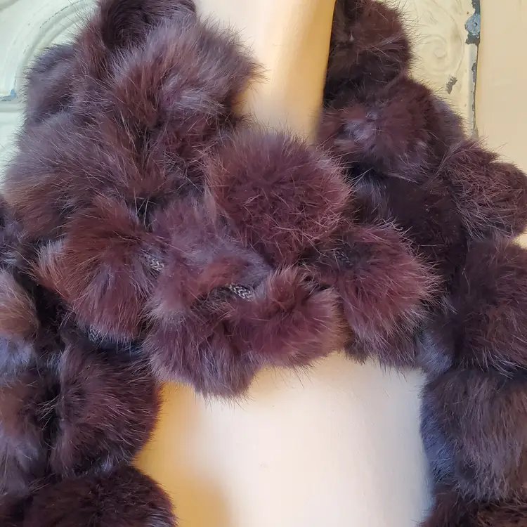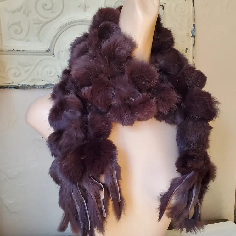 This vintage brown rabbit fur pom pom scarf is a warm and cozy addition to your winter wear. Excellent condition.