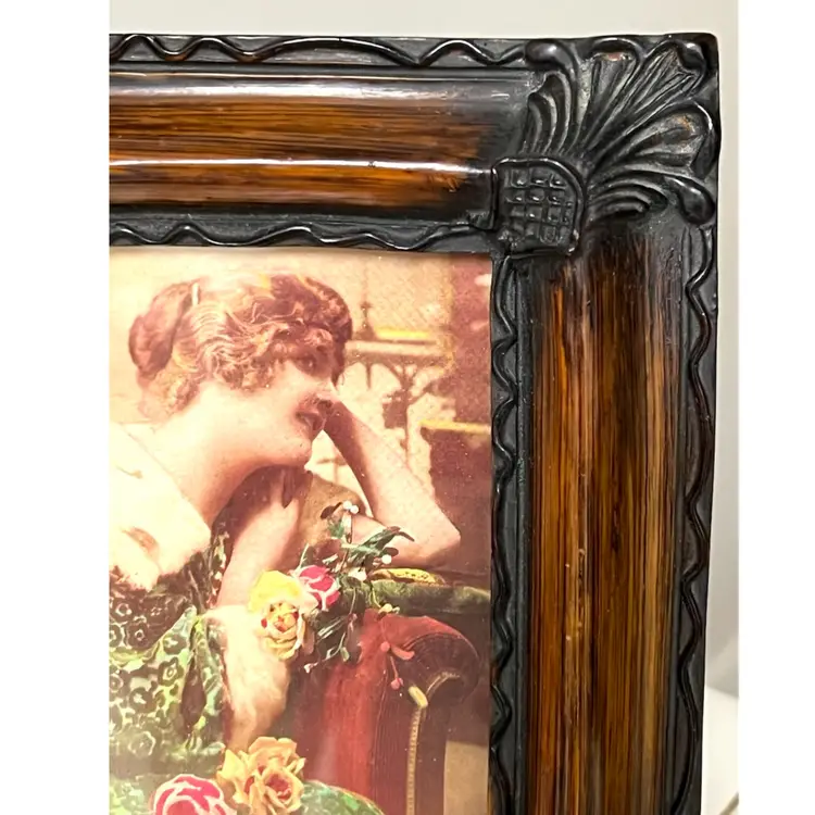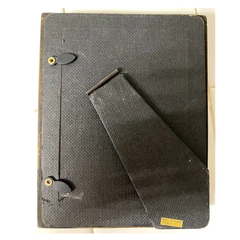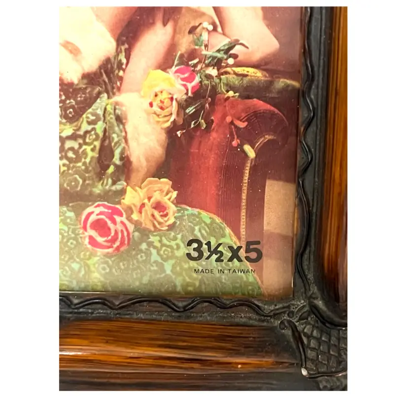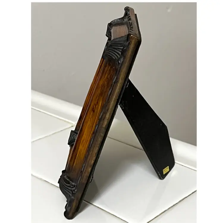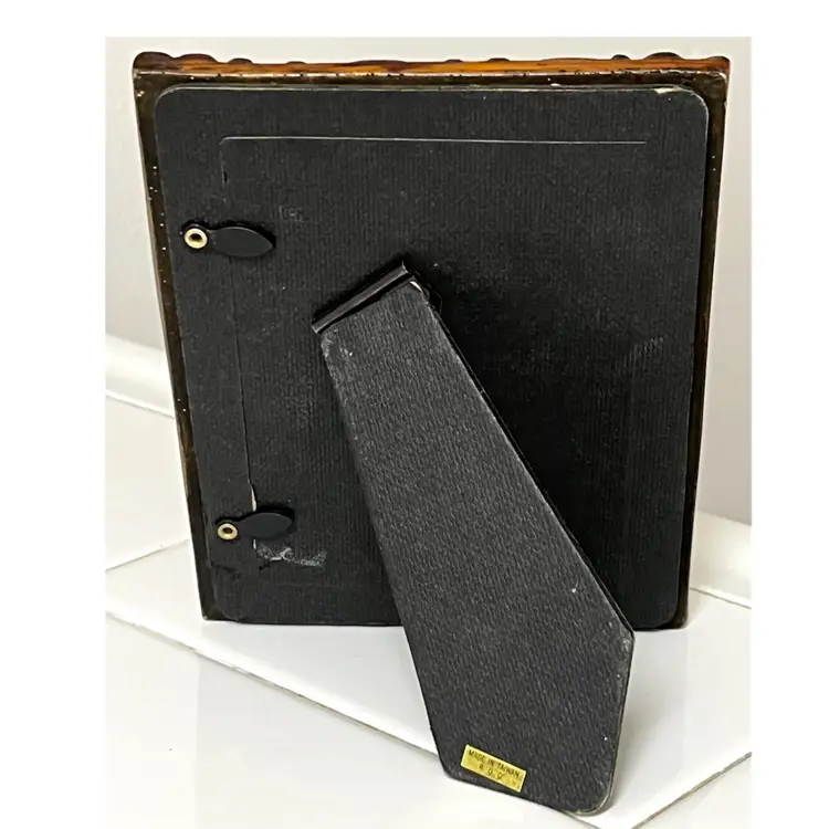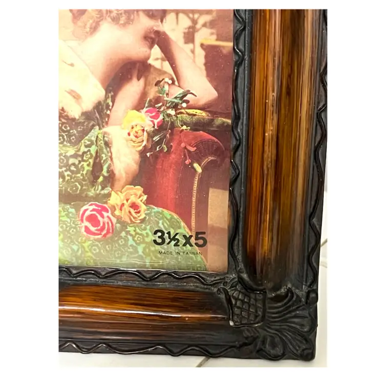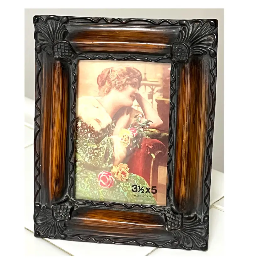 Brown Resin Rectangle Small Ornate Standing Photo Frame. Made in Taiwan. 5x6.5 in. Photo size 3.5x5 in.