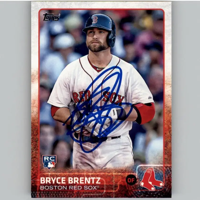 Authentic 2015 Topps baseball card featuring Bryce Brentz of the Boston Red Sox, adorned with his signature. A prized item for Red Sox fans and autograph card collectors. Your purchase aids Signatures For Soldiers in their mission to support homeless and disabled veterans.