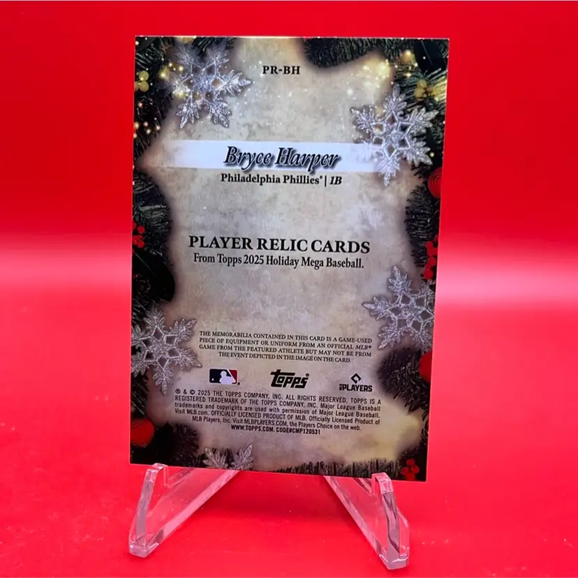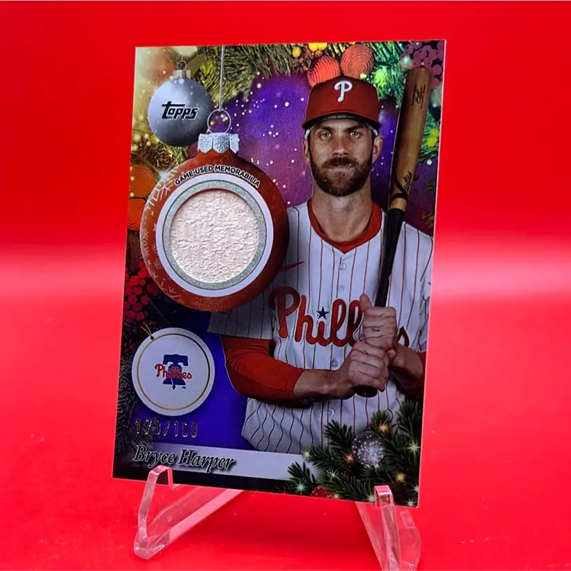 Bryce Harper 2025 Topps Holiday Mega Purple Refractor Player Relic