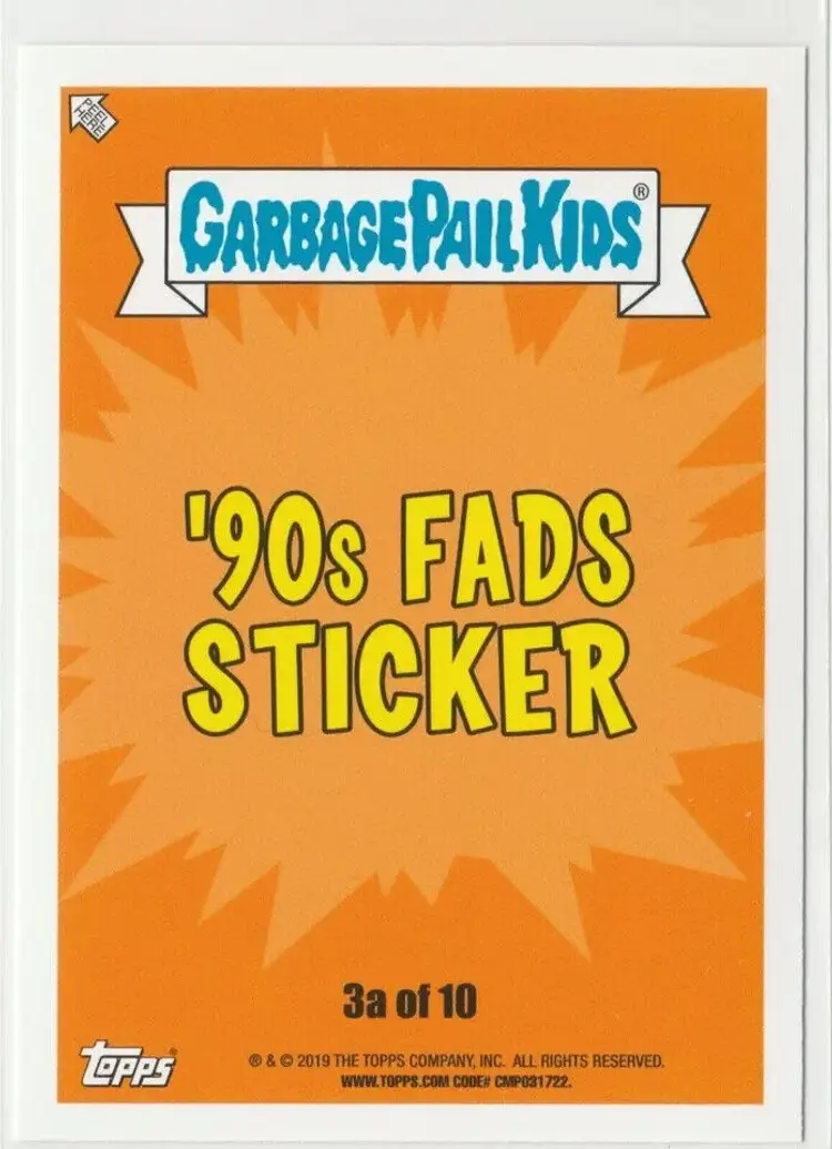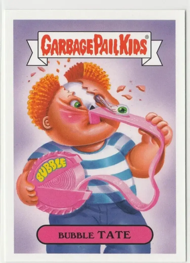 Bubble Tate #3a of 10 Topps Garbage Pail Kids GPK 2019 We Hate the '90s '90s Fads Sticker subset Hubba Bubba Bubble Tape bubblegum