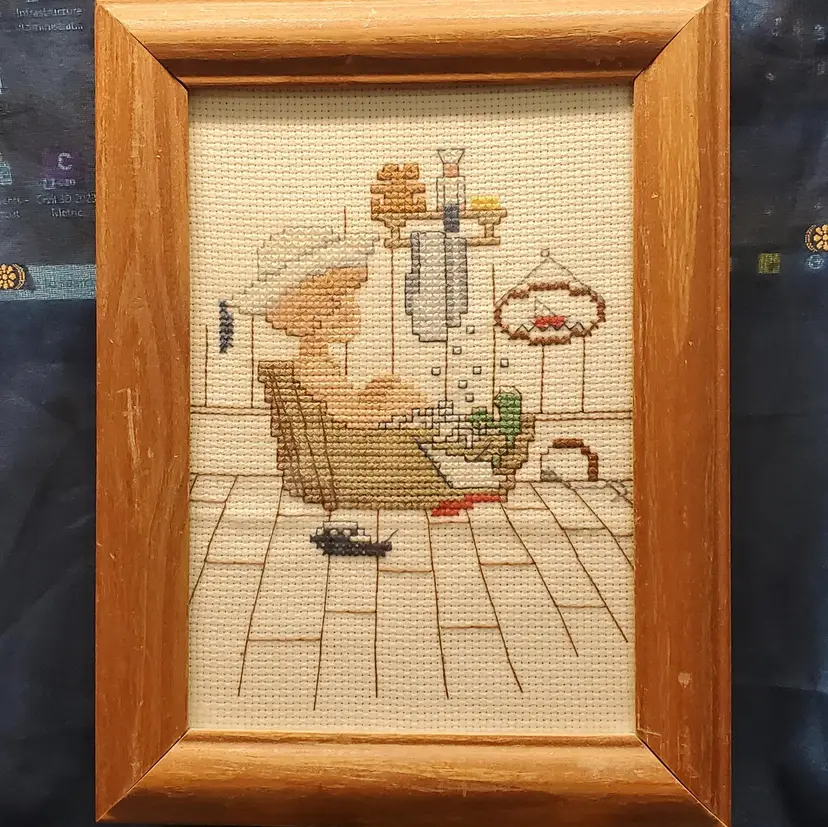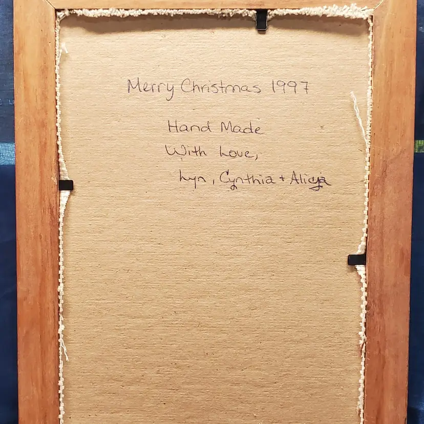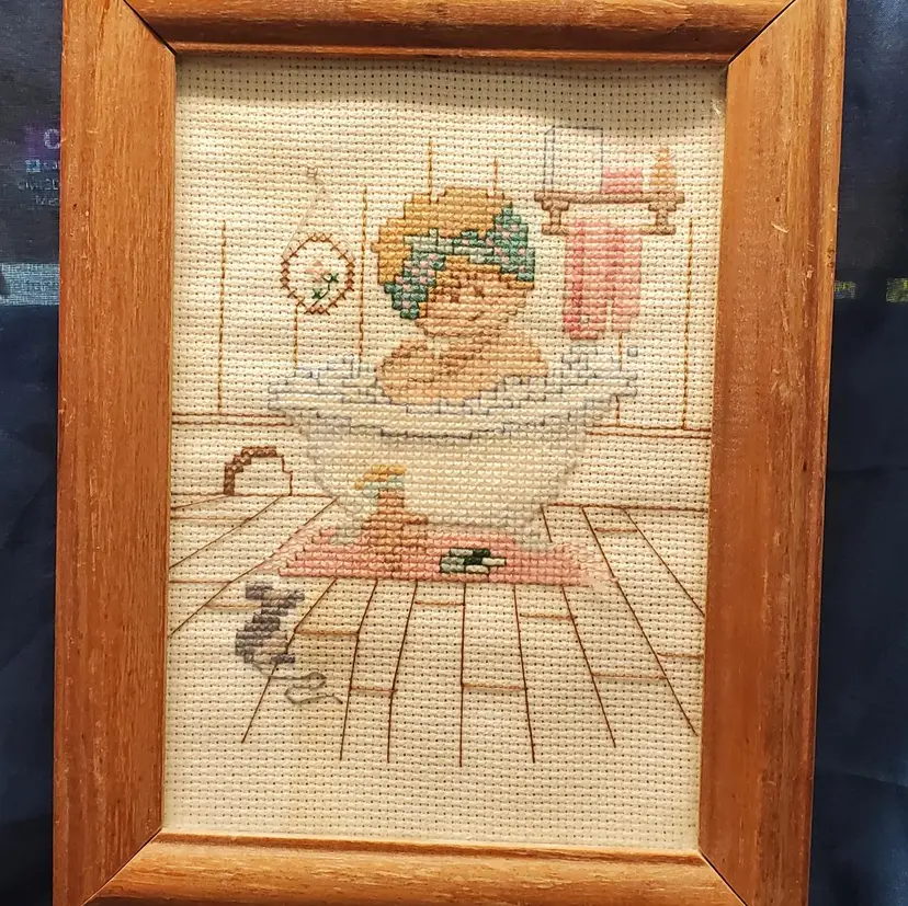 Perfect framed needlepoint/embroidery pictures under glass to showcase in a child's bathroom or even as a baby shower gift! Each are 5inx7in and were stitched in the late '90s, and the girl has a small water mark on the fabric. Please see pictures as part of the description.