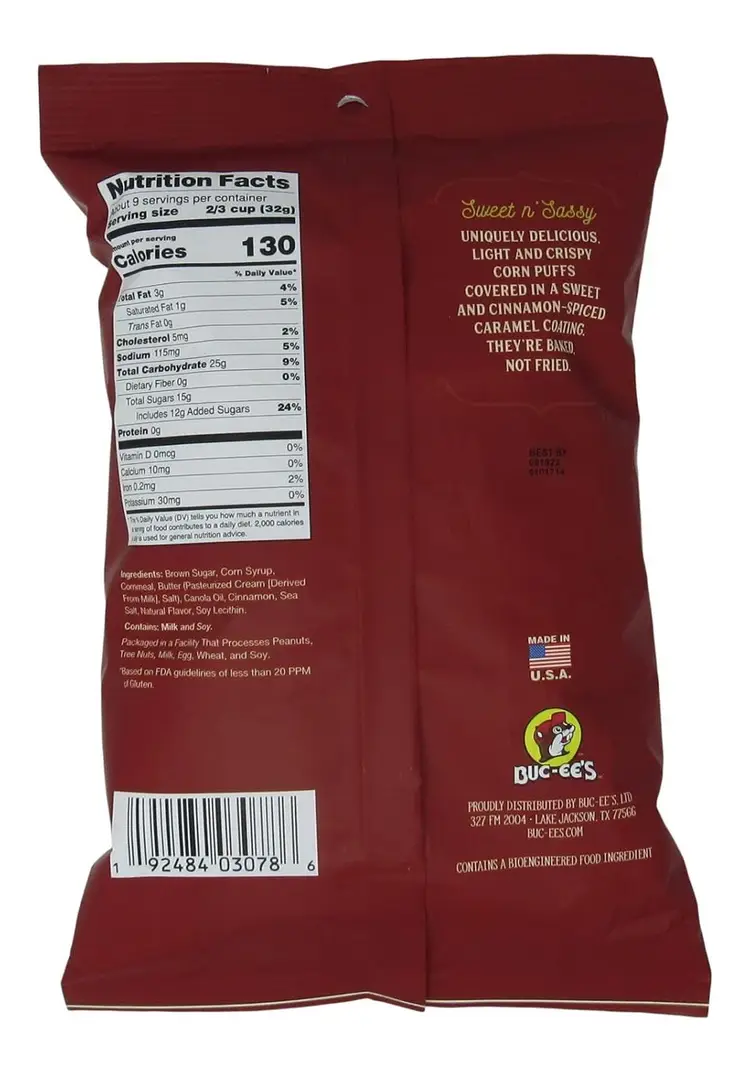 If you love Buc-ee's Nuggets, you will love Buc-ee's newest product -- cinnamon sweet snack puffs! These are uniquely delicious, light and crispy corn puffs covered in a sweet and cinnamon spiced caramel coating. They're baked not fried. You won't be able to put these down! What is Buc-ee's? Buc-ee's is a chain of convenience stores located in the Central, North, South, and Southeast regions of Texas. Buc-ee's is known for its very large-format stores (relative to other convenience stores) and a logo depicting Bucky the beaver. This is for one 10 ounce bag of Buc-ee's beaver nuggets cinnamon sweet flavored.