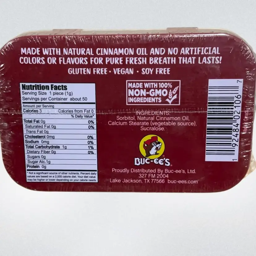 Buc-ee's Gluten Free & Sugar Free Mints Cinnamon 1.76Oz. (50) Count