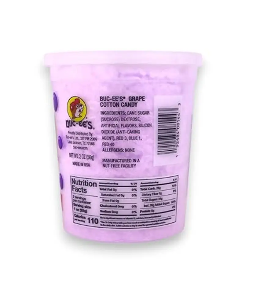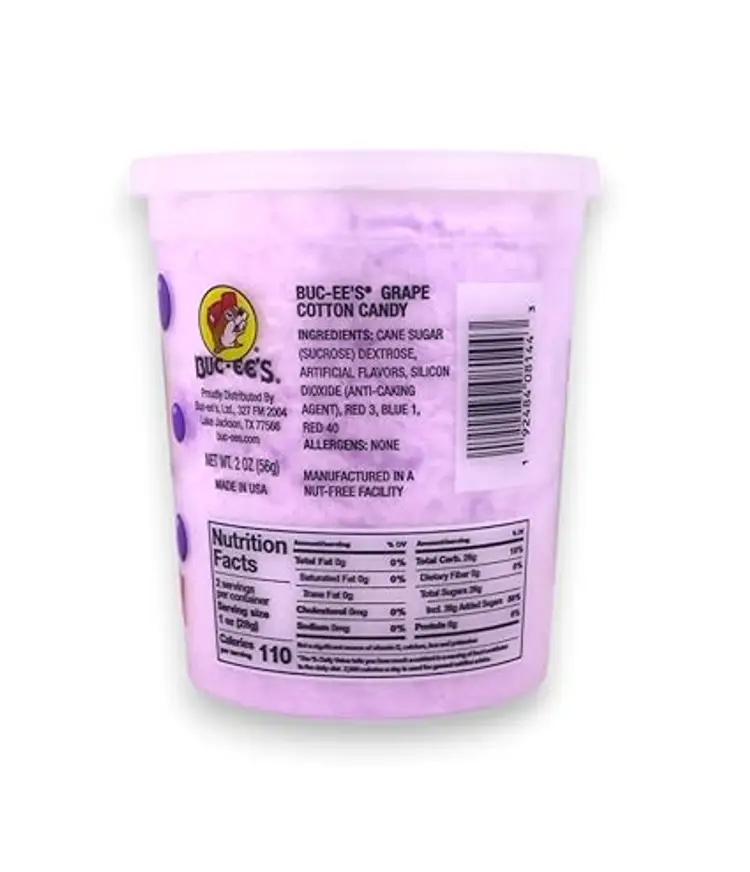 Introducing Buc-ee's Cotton Candy, a delightful treat that brings joy to every bite! Available in Classic, Watermelon, and Grape flavors, this fluffy confection is perfect for satisfying your sweet tooth. The Classic flavor offers the timeless taste you love, while Watermelon provides a juicy, refreshing twist. Grape delivers a burst of fruity fun with each bite. Perfect for parties, fairs, or a nostalgic treat, Buc-ee's Cotton Candy is a must-have for all ages. Indulge in the whimsical sweetness of Buc-ee's Cotton Candy and bring a smile to your face with every fluffy bite!