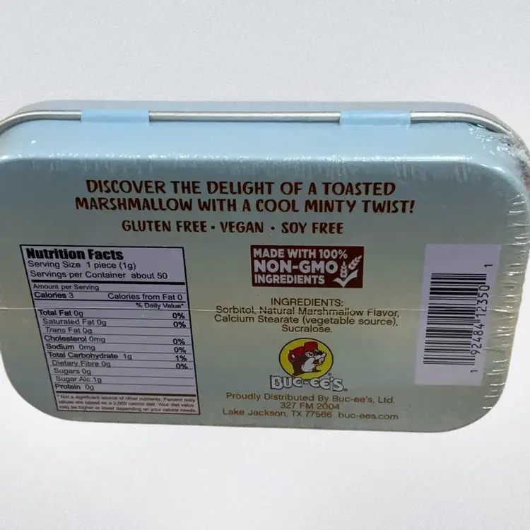 Indulge in a sweet and refreshing treat with Buc-ee’s Marshmallow Mints! These delicious mints combine the soft, creamy flavor of marshmallow with a cool, fresh finish, making them the perfect pick-me-up anytime. Housed in a stylish, portable tin featuring the iconic Buc-ee’s logo, they’re easy to take on the go—whether you’re traveling, commuting, or just need a little burst of sweetness. Perfect for Buc-ee’s fans and mint lovers alike!