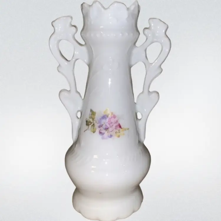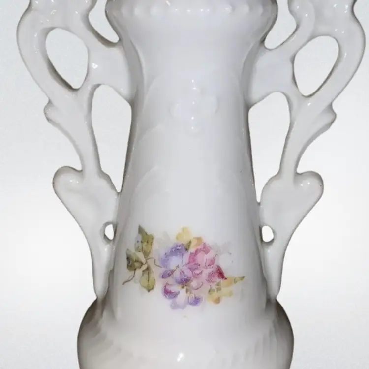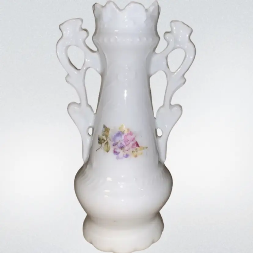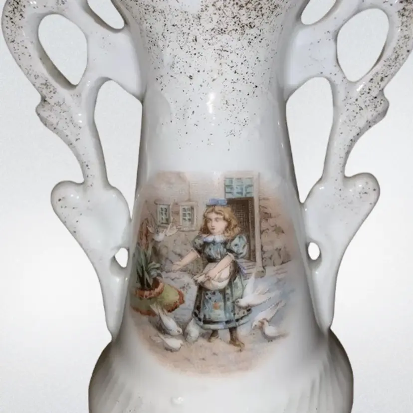 Vintage 6.5” Bud Vase Little Girl Feeding Birds & Floral. Condition is really good used vintage.
