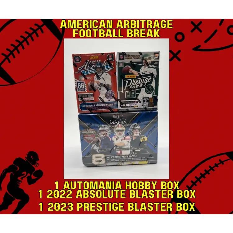๐ The Break: 1 2022 WILDCARD AUTOMANIA HOBBY BOX ( 8 CARDS, 8 AUTOS PER BOX) ๐ 2023 PRESTIGE BLASTER BOX ๐2022 ABSOLUTE BLASTER BOX ๐TIME: Break will be at December 30th, 2023 @ 8pm Eastern time on DIBDIT ๐THE CARDS: 140 CARDS TOTAL ๐ALL CARDS SHIP, including base. ๐ SHIPPING: Shipping is $4.50 for One team and is only $0.25 for any additional team