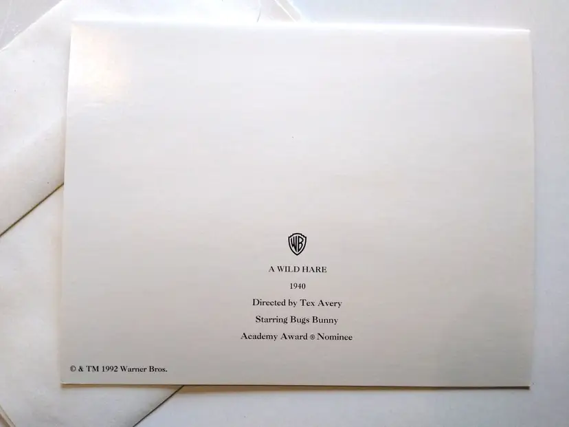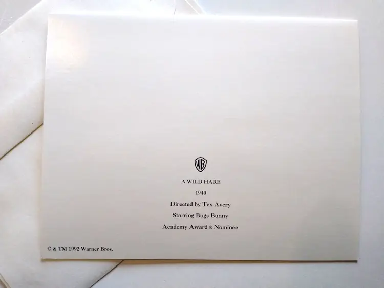 Original licensed 1992 Warner Bros greeting card. Artwork was taking from the cell art. Size is 6" x 4.75". Blank inside. Comes with envelope.
