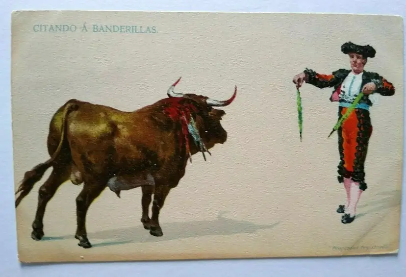 Features: Divided Back, Embossed Custom Bundle: No Subject: Bullfight Number of Items in Set: 1 Occasion: Bullfighter Era: Pre-War (Pre-1914) Size: Standard (5.5 x 3.5 in) Country/Region of Manufacture: Unknown Material: Paper Brand/Publisher: Unknown Postage Condition: Posted Artist: Unknown Original/Licensed Reprint: Original Unit of Sale: Single Unit Theme: Greetings Type: Printed (Lithograph) Year Manufactured: 1909
