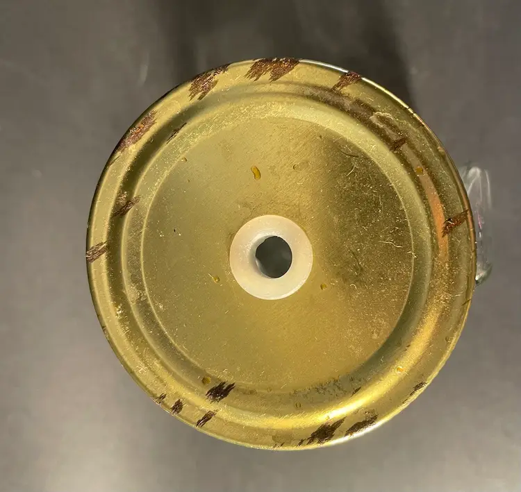 Heavy glass jar-type travel mug with lid with a hole for a straw. No straw is included. Lid has a little rust on it, but the lids are available at a lot of craft stores. Otherwise in good shape.