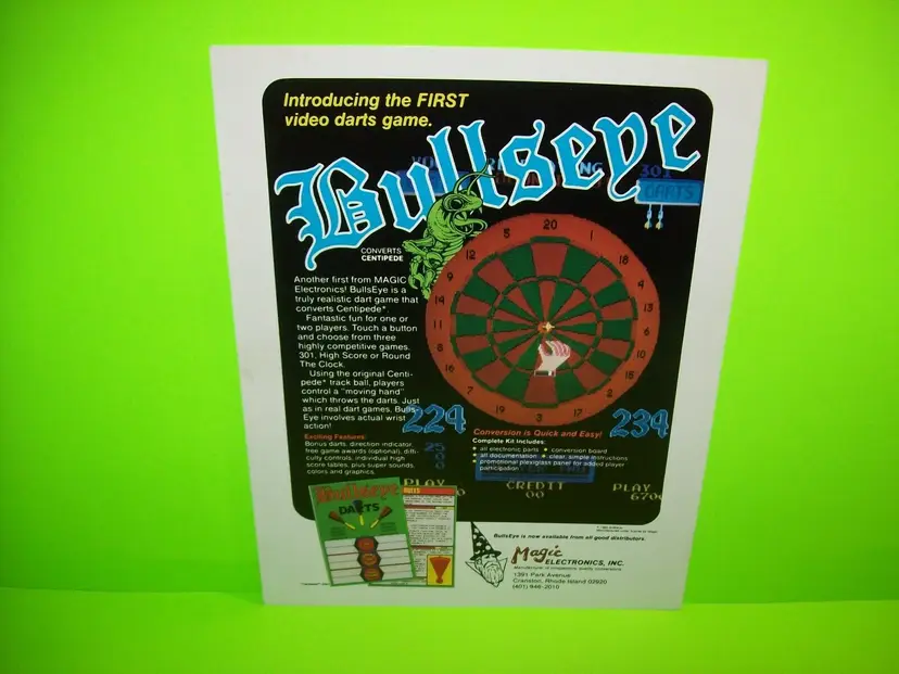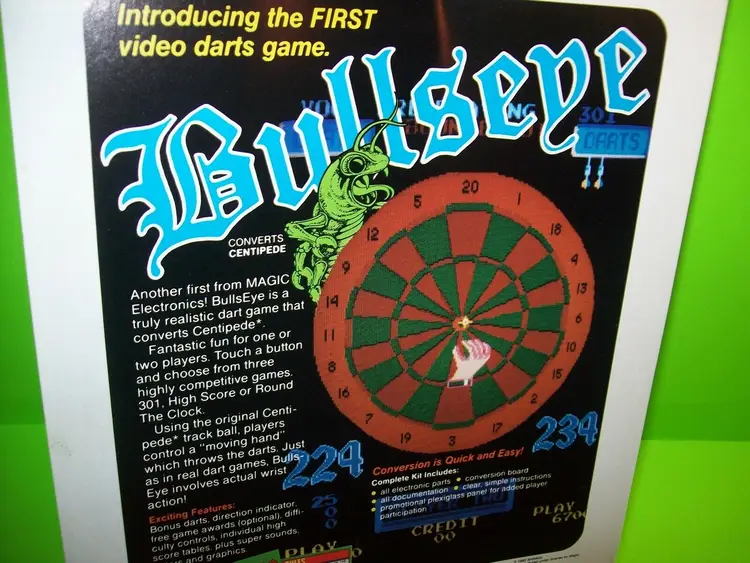 Material: Paper Modified Item: No Country/Region of Manufacture: United States Original/Reproduction: Original Year: 1985 Game Title: Bullseye Brand: Magic Electronics Inc. Arcade: Flyer
