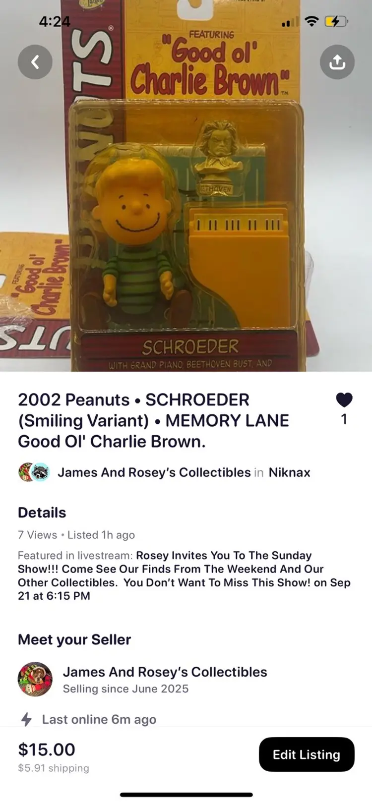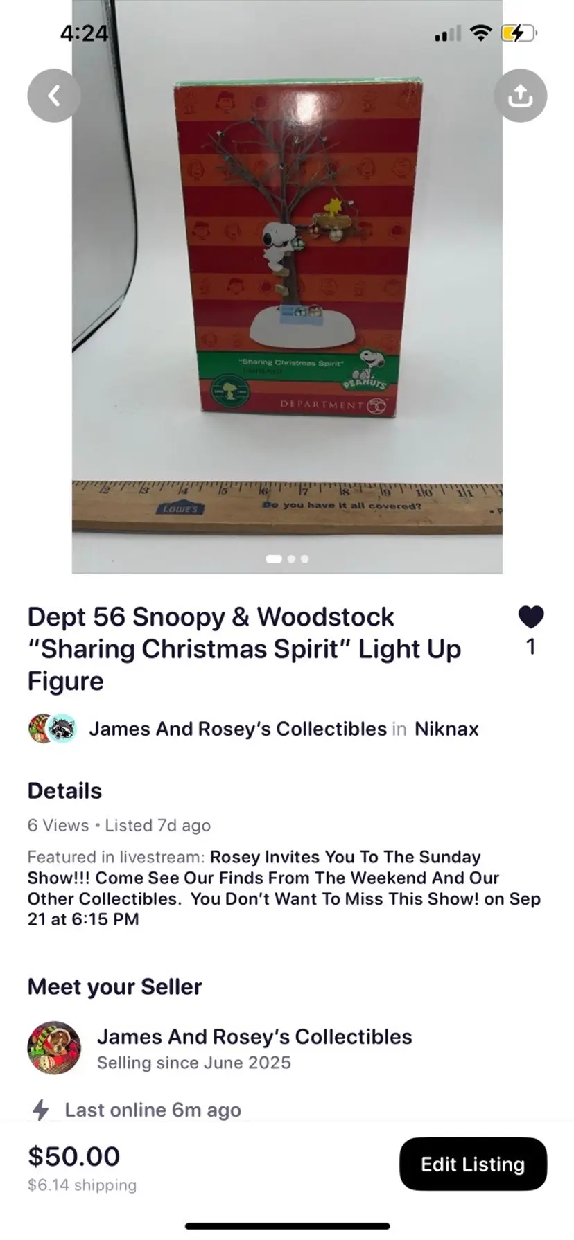 Vintage MCM Amber Empoli Ribbed Art Glass Pedestal Vase 14.5” “damage” 1 dept 56 snoopy 4 snoopy figures