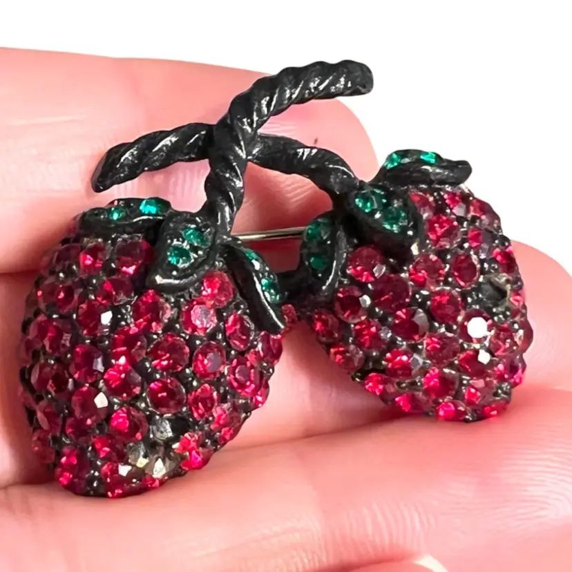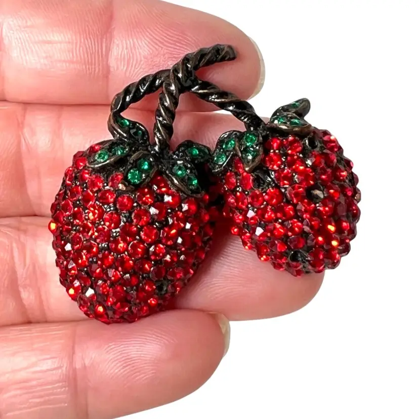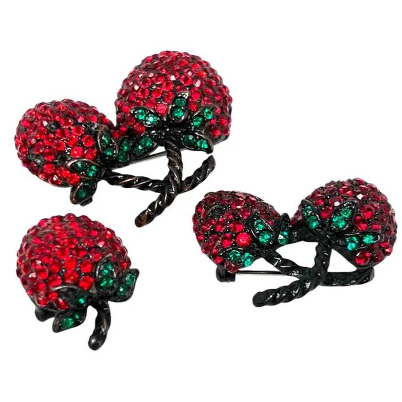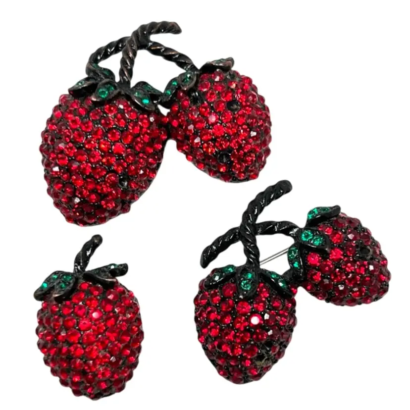 Bundle Of 3 Red Crystal Strawberry π Brooches!