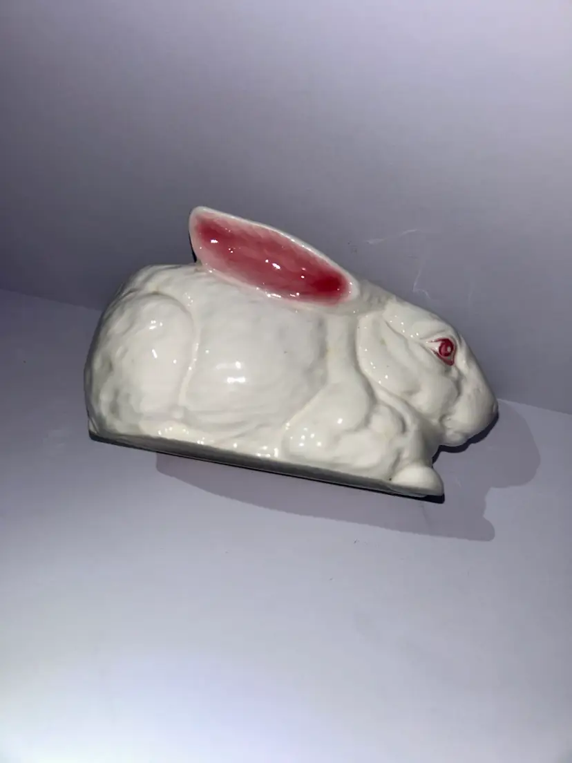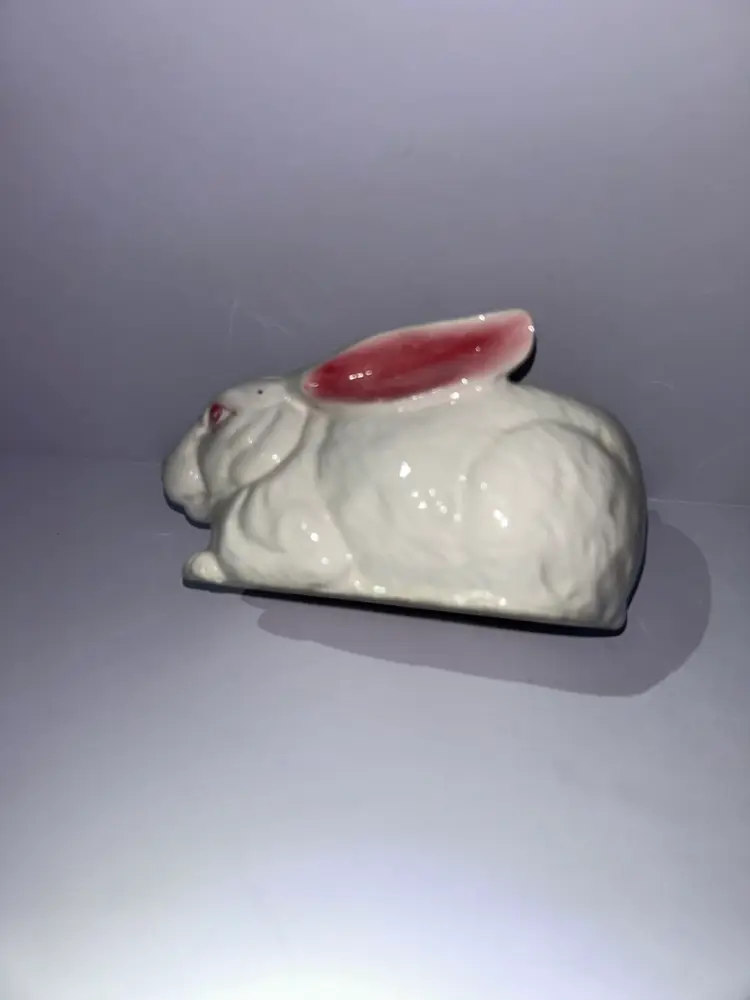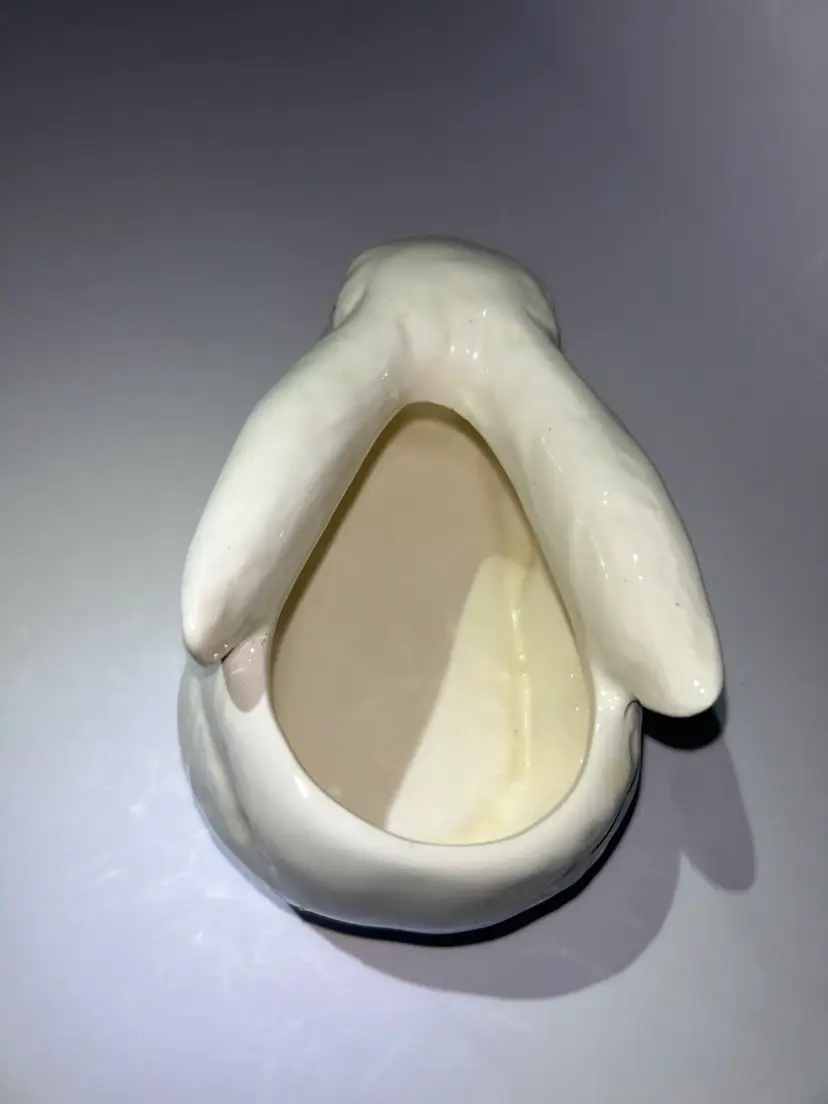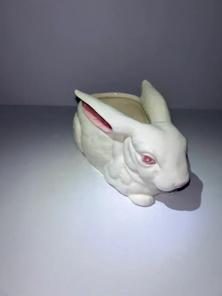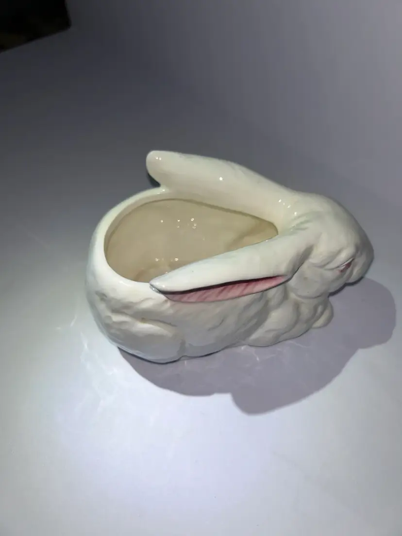 This adorable bunny planter would be perfect For succulents or as a decoration for spring/Easter. I think this is most likely a Lefton piece marked with 43-077 and the “D-ANN IMP” stamp. Which indicates it was imported from Japan. It is in excellent condition with no chips, cracks or repairs. It measures approximately 5 1/2” long and approximately 3” wide ear to ear. We do combine shipping if purchasing more than one item from our shop and we refund any shipping overages at the time of printing the label.