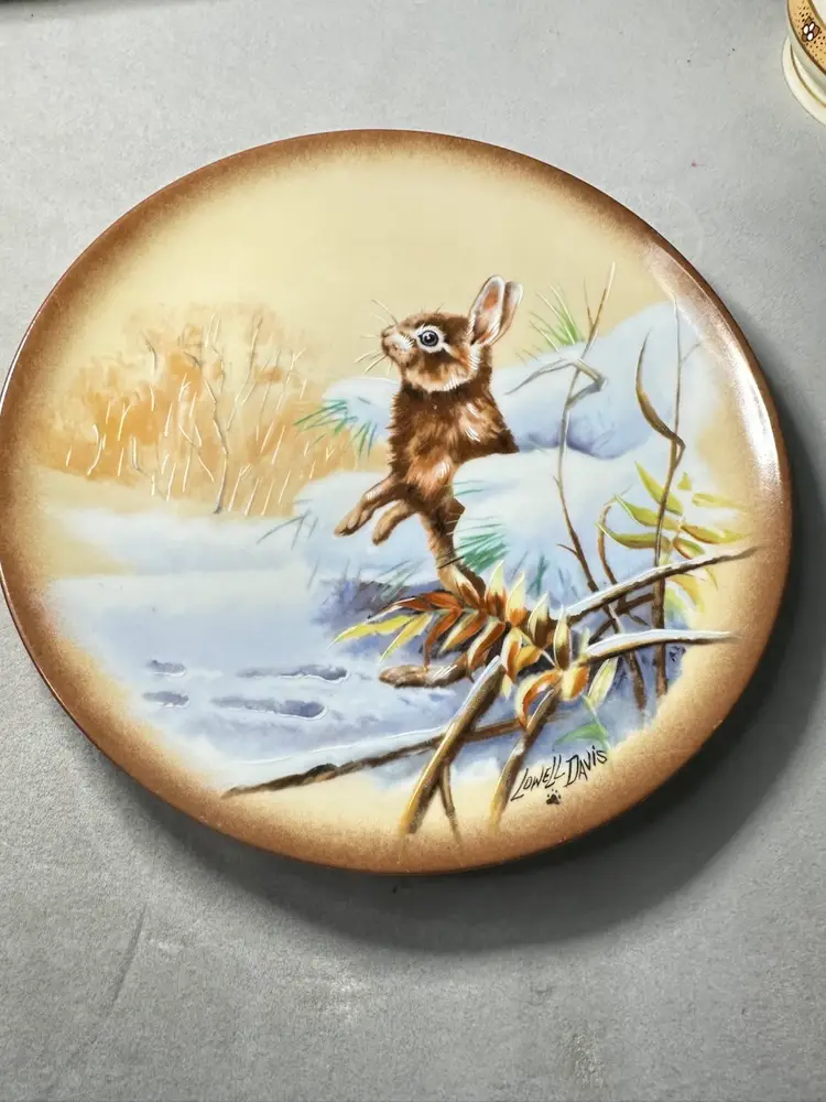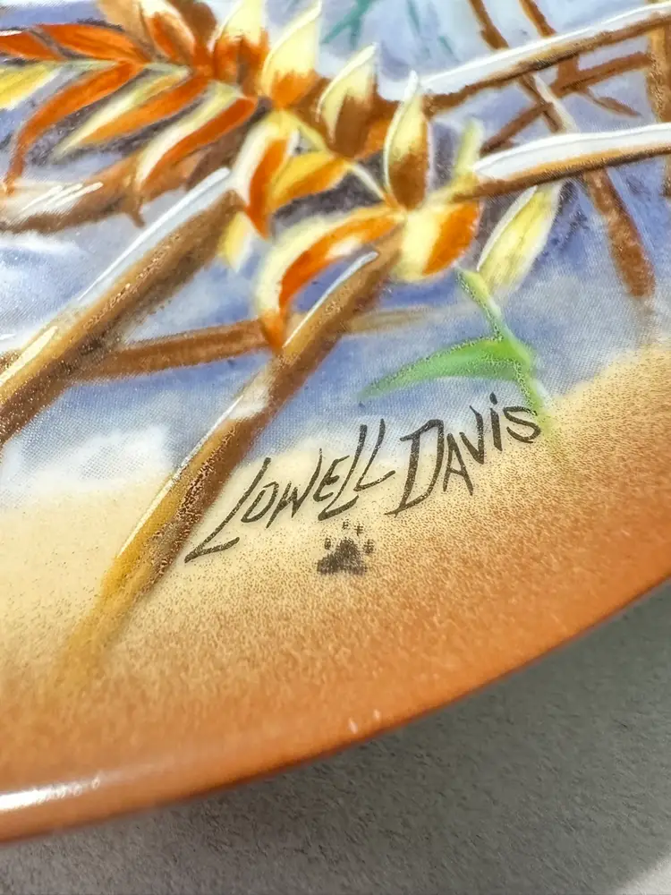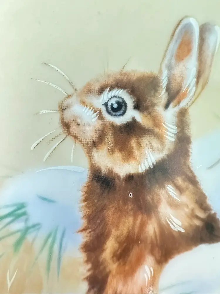 Decal then hand painted details. Good condition can be hung on the wall. 7.25 inches