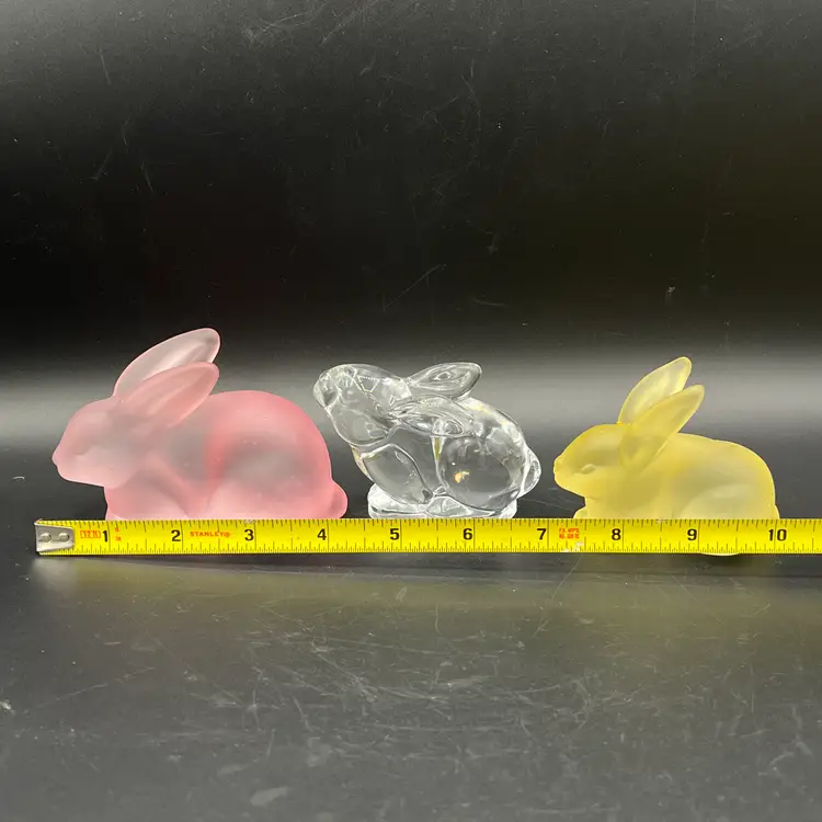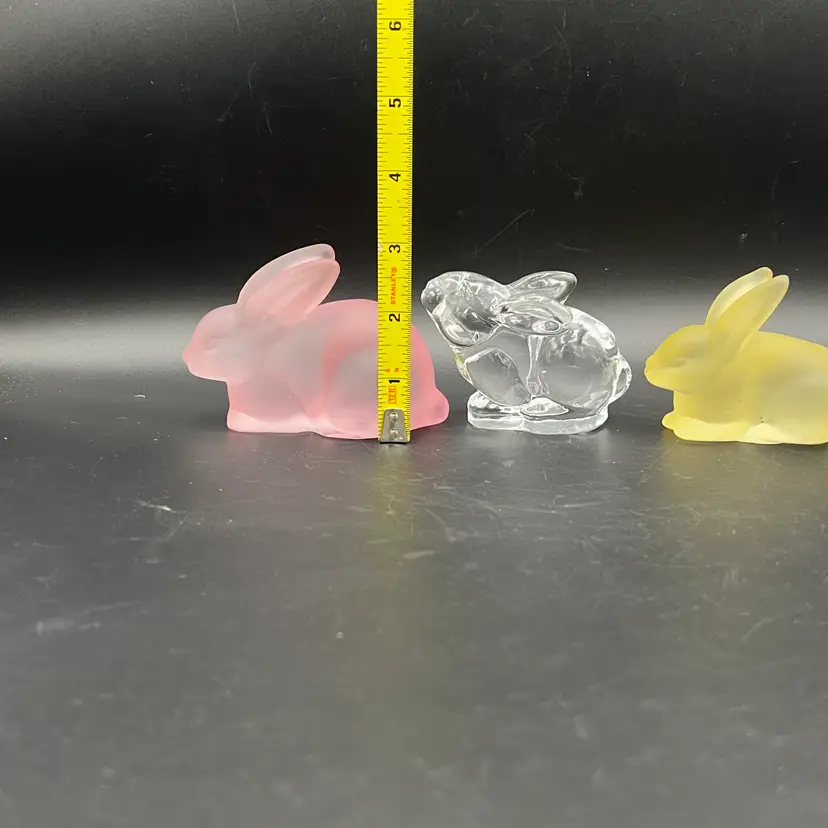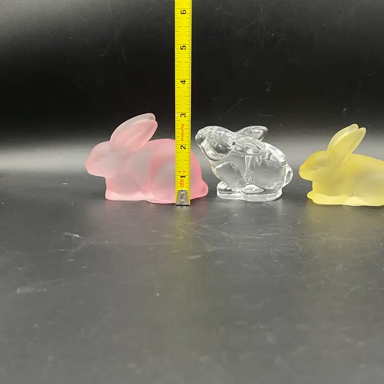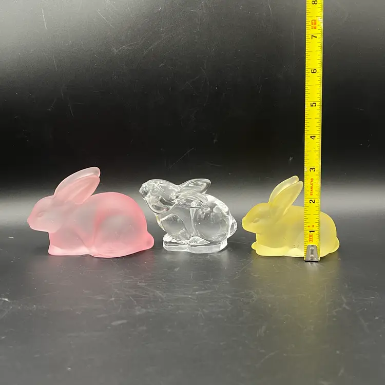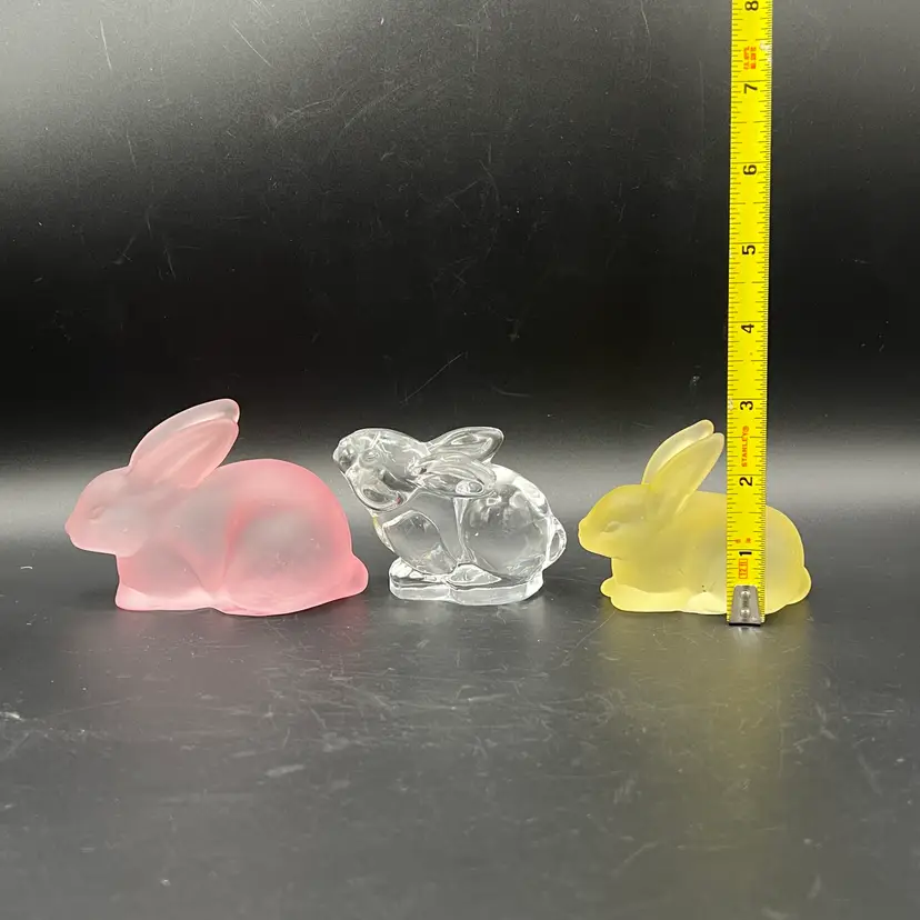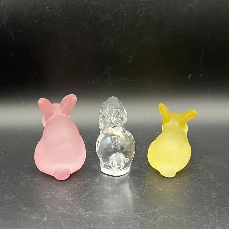 Art Glass Bunny Rabbits Yellow, Pink & Satin ~ Heavy ~ Set of 3