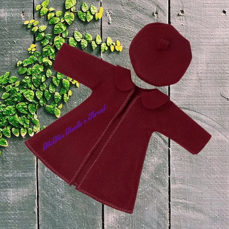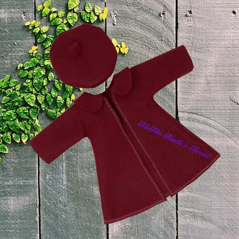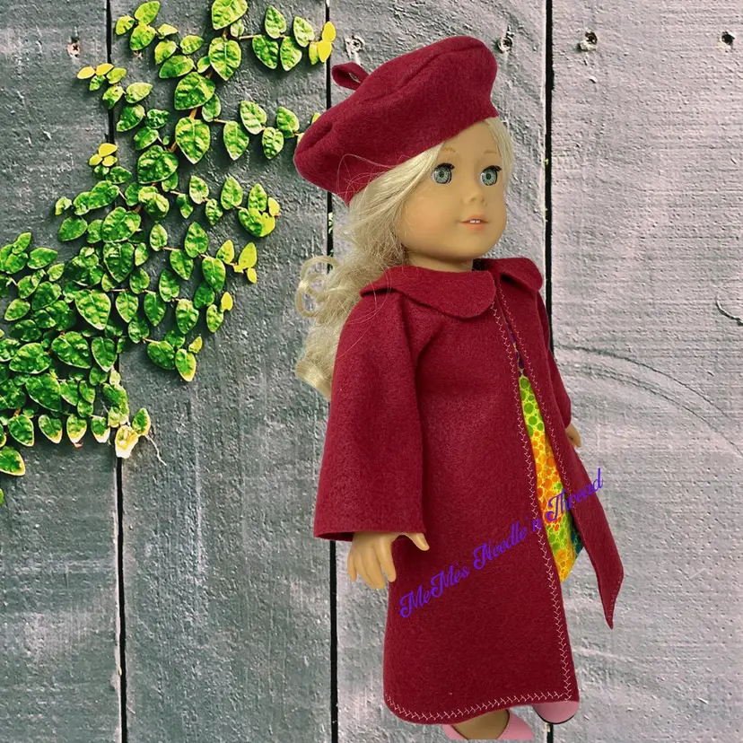 Add a touch of elegance to your 18" doll's wardrobe with this stylish burgundy-colored coat and matching beret. Perfect for fashion-forward playtime, this set is sure to make your doll stand out!
