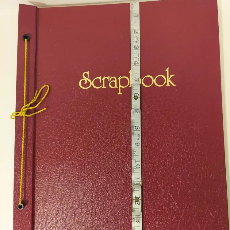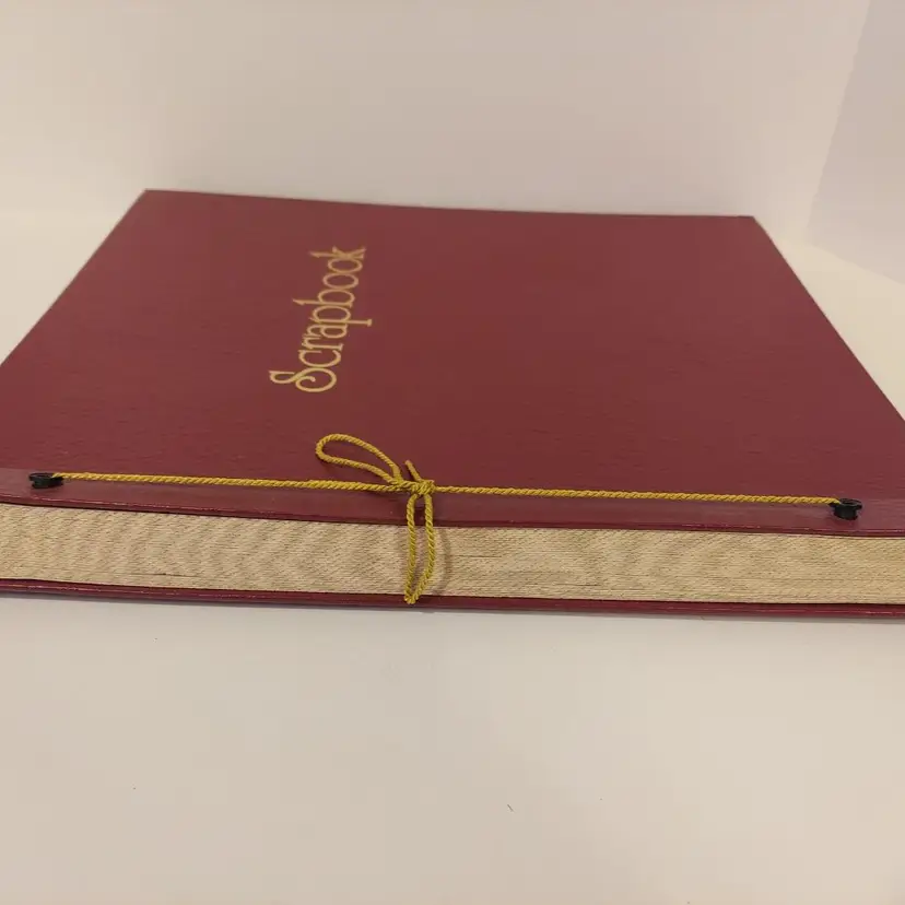 This 49 page vintage scrapbook is perfect for storing and showing off your favorite photos, greeting cards and memories. It measures approximately 14.25x12.25 inches. There are some signs of wear on the cover of the scrapbook, otherwise it is in good condition.