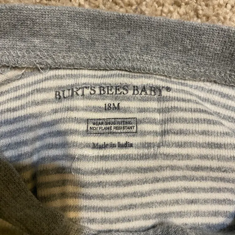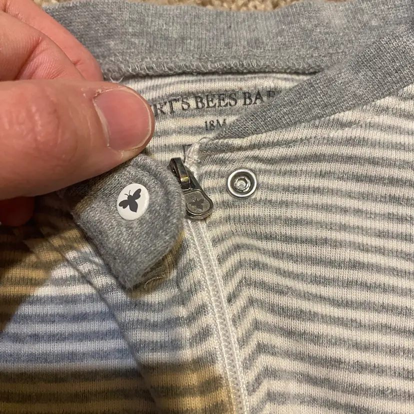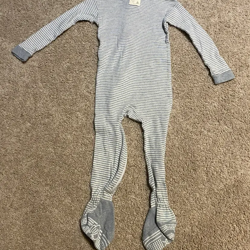 You are purchasing one Boy's Size 18 Months Gray and White Striped Pattern Footed Zip-Up Sleeper by Burt's Bees and their Baby collection. This Sleeper is in overall great condition with no rips, stains, holes or issues with the zipper.