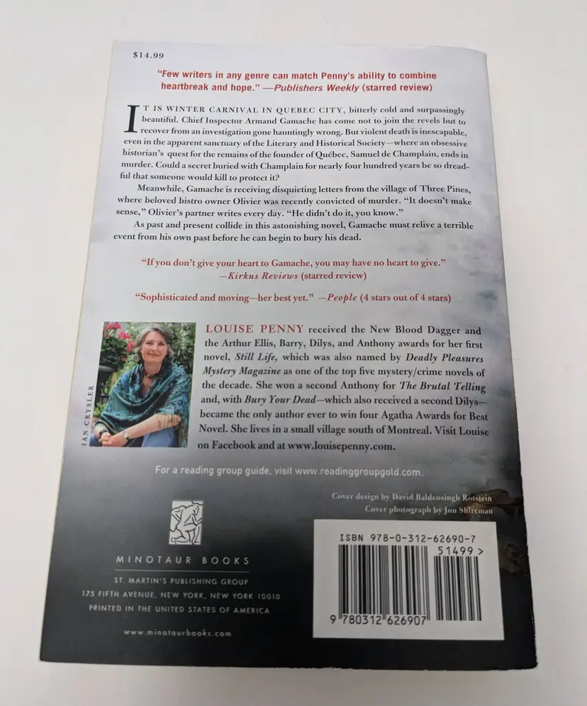 It’s winter carnival in Quebec City, bitterly cold and surprisingly beautiful. Chief Inspector Armand Gamache has come not to join the revels but to recover from an investigation gone hauntingly wrong. But violent death is inescapable, even in the apparent sanctuary of the Literary and Historical Society—where an obsessive historian’s quest for the remains of the founder of Quebec, Samuel de Champlain, ends in murder. Could a secret buried with Champlain for nearly four hundred years be so dreadful that someone would kill to protect it?