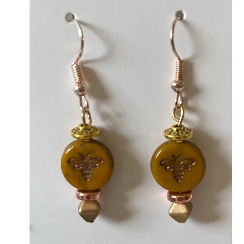 Busy Bee earrings part of my "My Mother's Garden" collection Stone bead with gold bee hangs 1/2" on gold ear wire