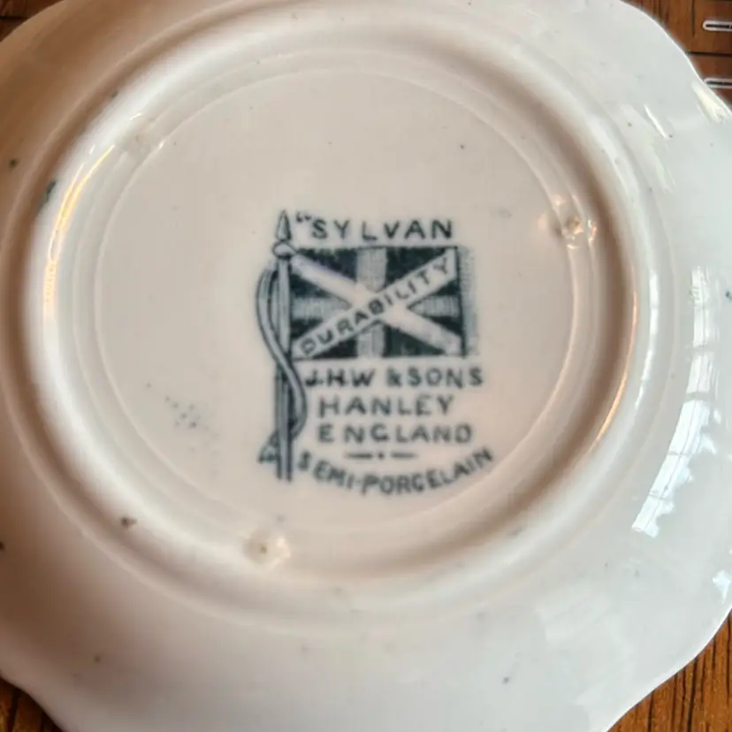 J.H.W. & Sons Hanley England vintage BUTTER PAT. Measures 3.25” across. No chips or cracks.