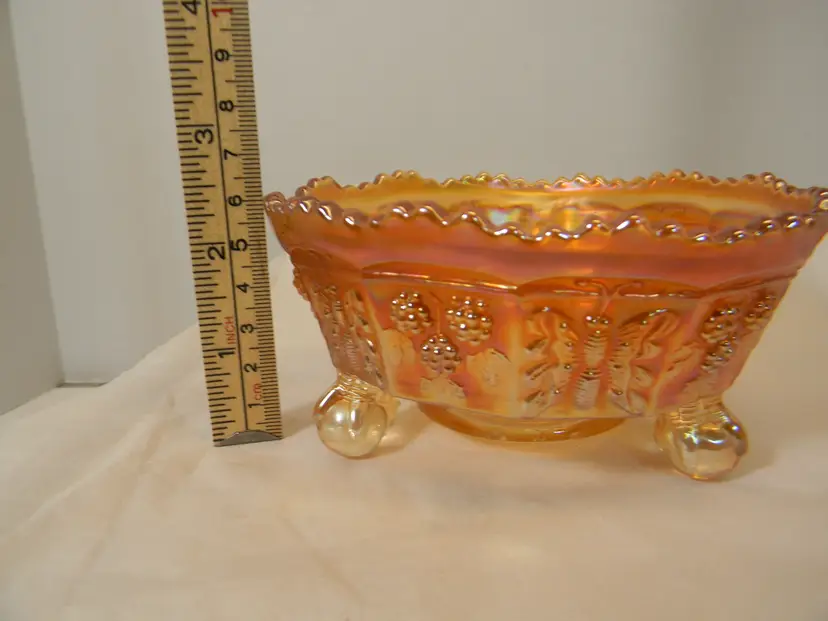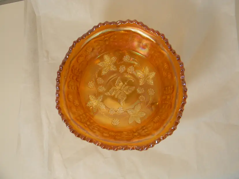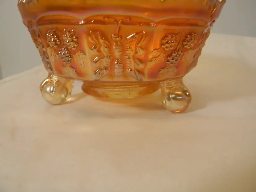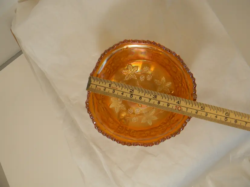 Marigold Iridescent luster bowl butterfly and berry pattern No chips or cracks used condition, Iridescent luster (4 3/4" W X 2 1/5 T) No Stains No Box or Paperwork **See all photos before purchasing Measurements are in the photos