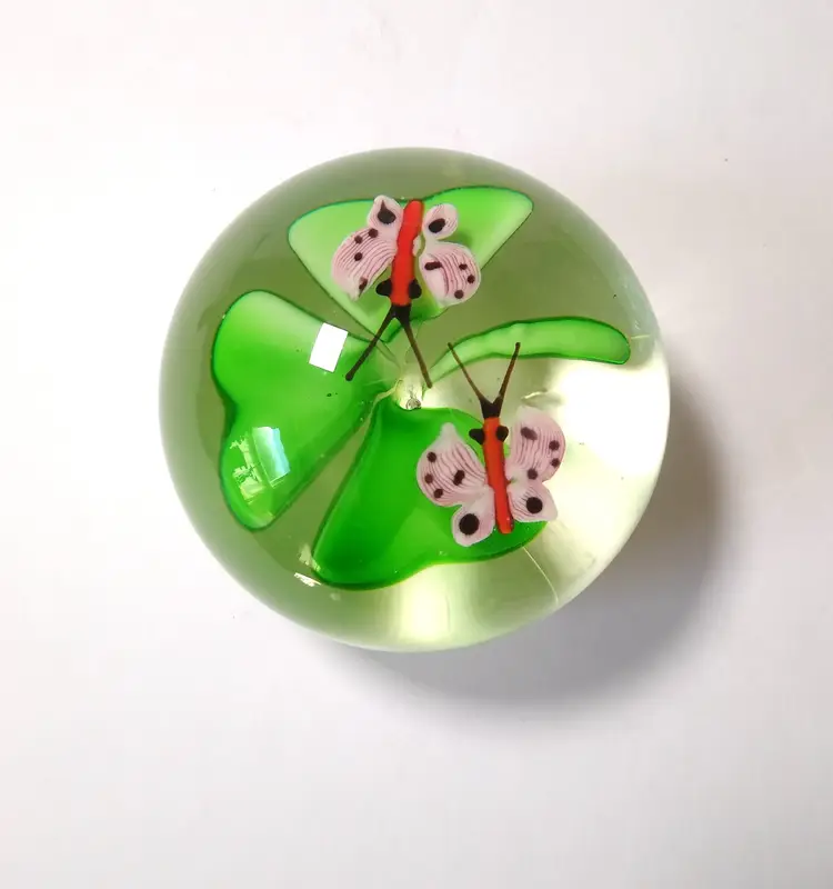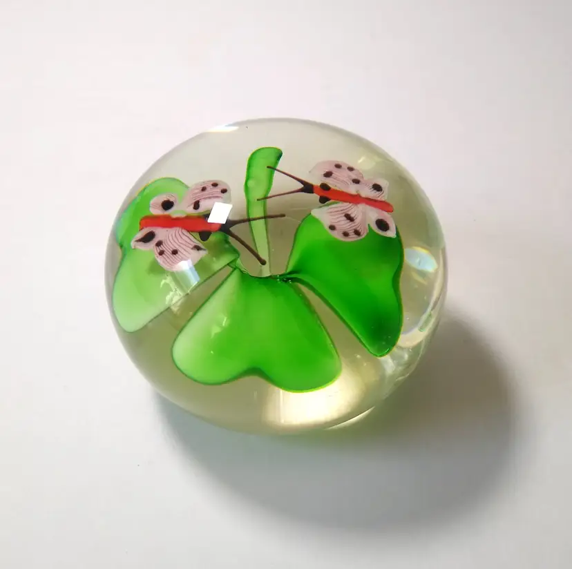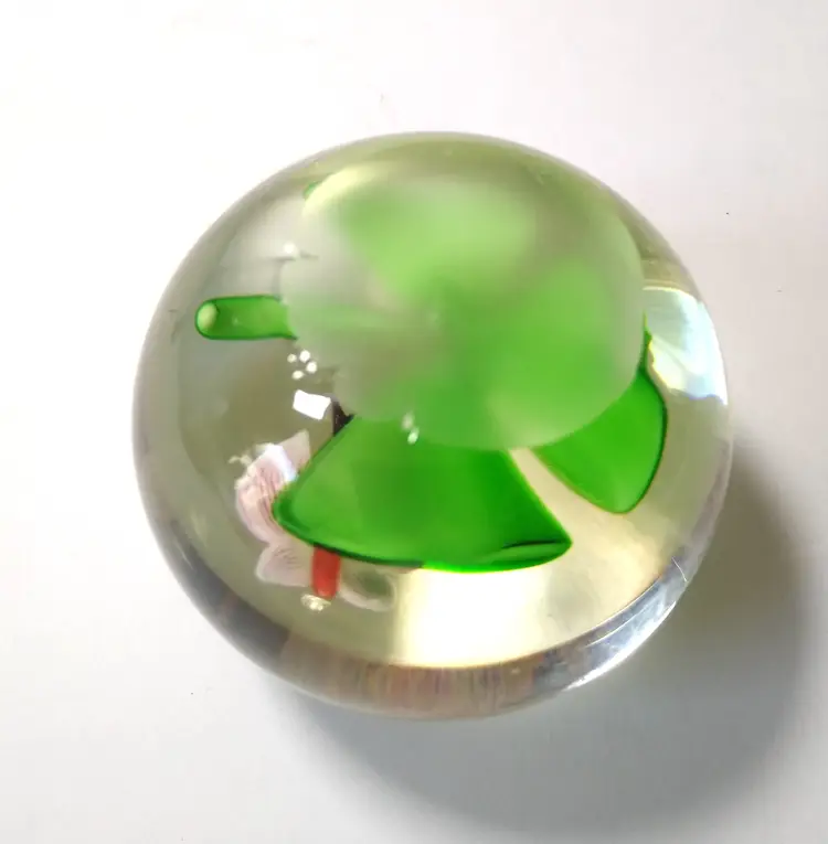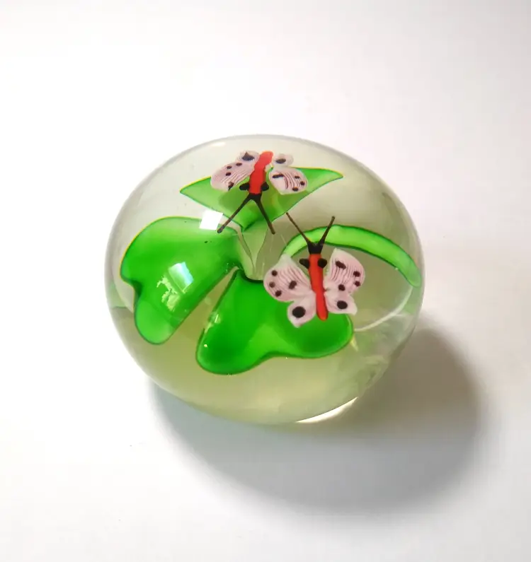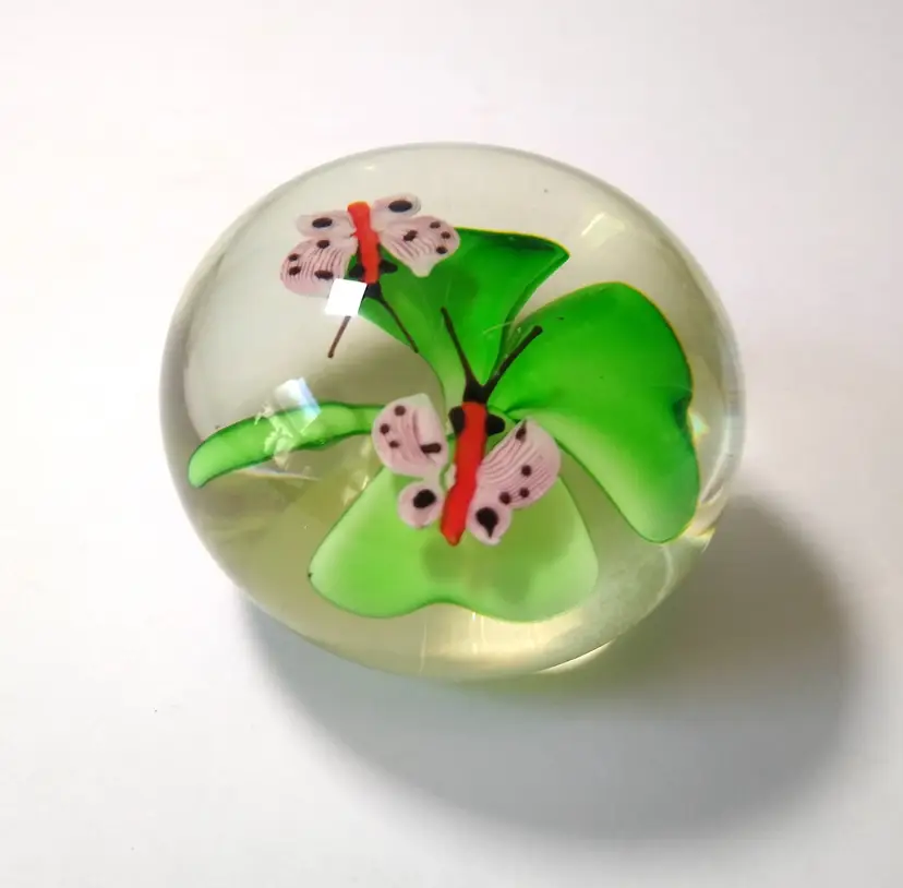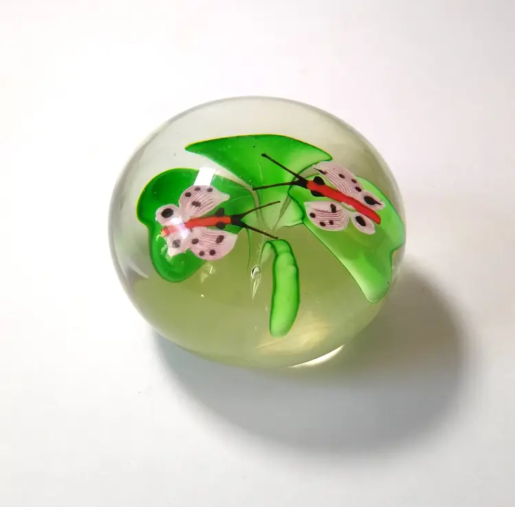 This Paperweight measures approx 2.25 inches across at its widest point and just over an inch high.