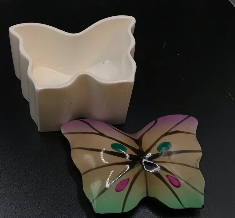Butterfly Bone China Trinket Box Hakuho Japan Lidded Multicolor Small approximately 3 inches Very nice condition