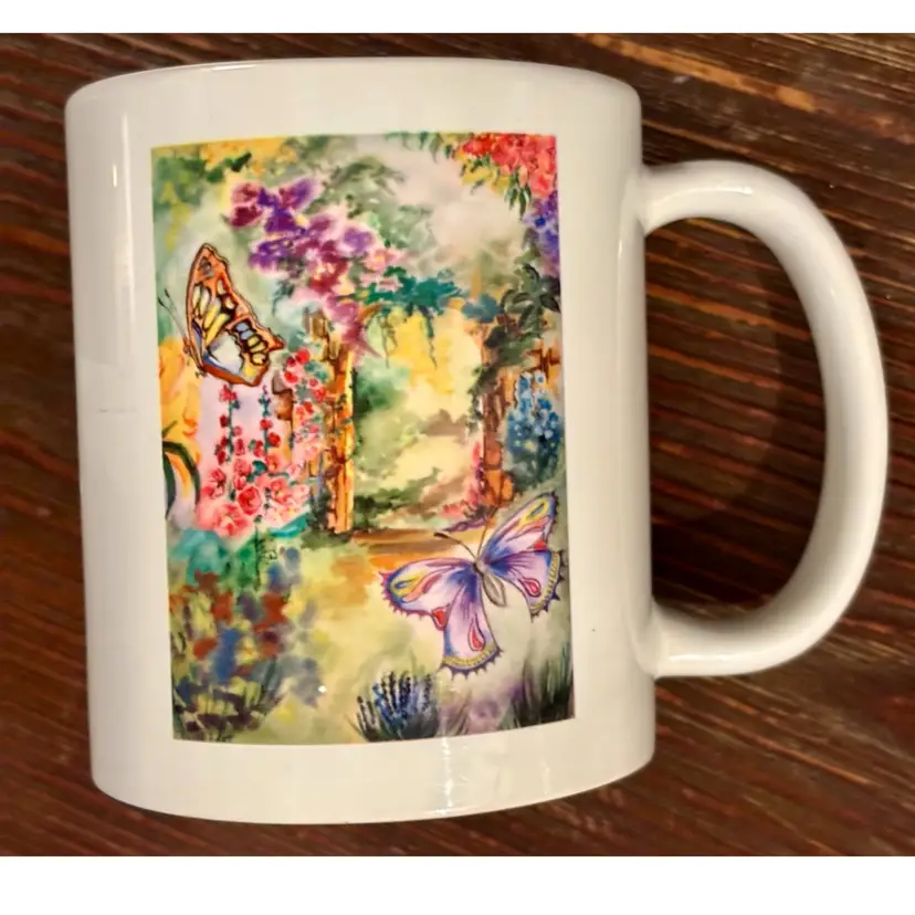 John10:10 Butterfly Garden Spring Ceramic Floral Botanical Coffee Mug/Cup White No Chips or Cracks