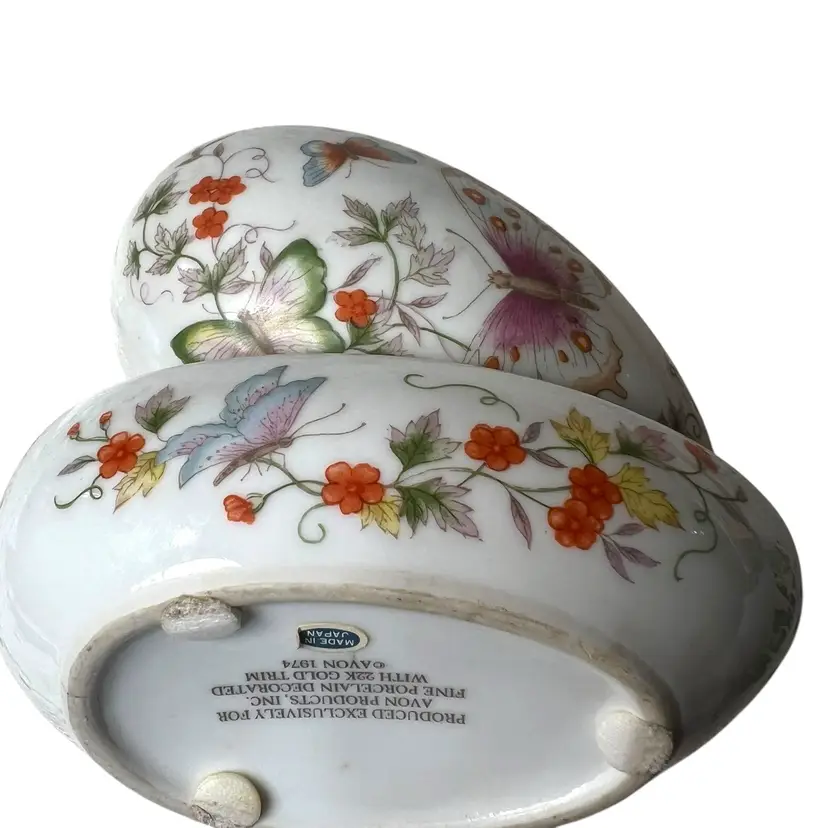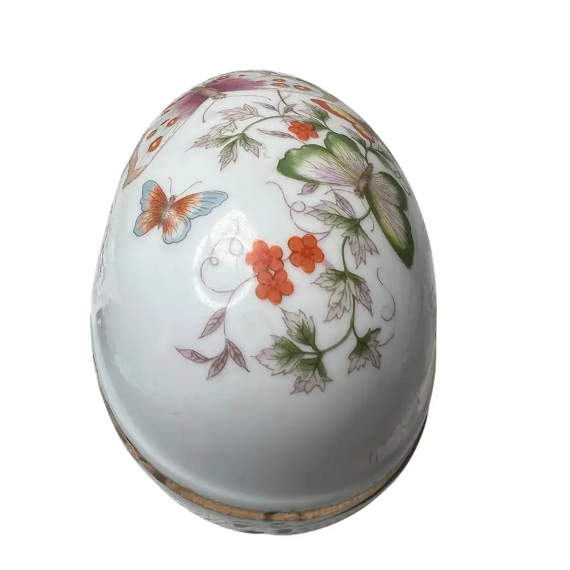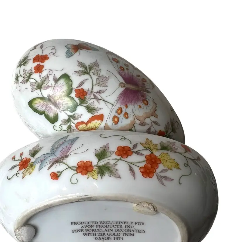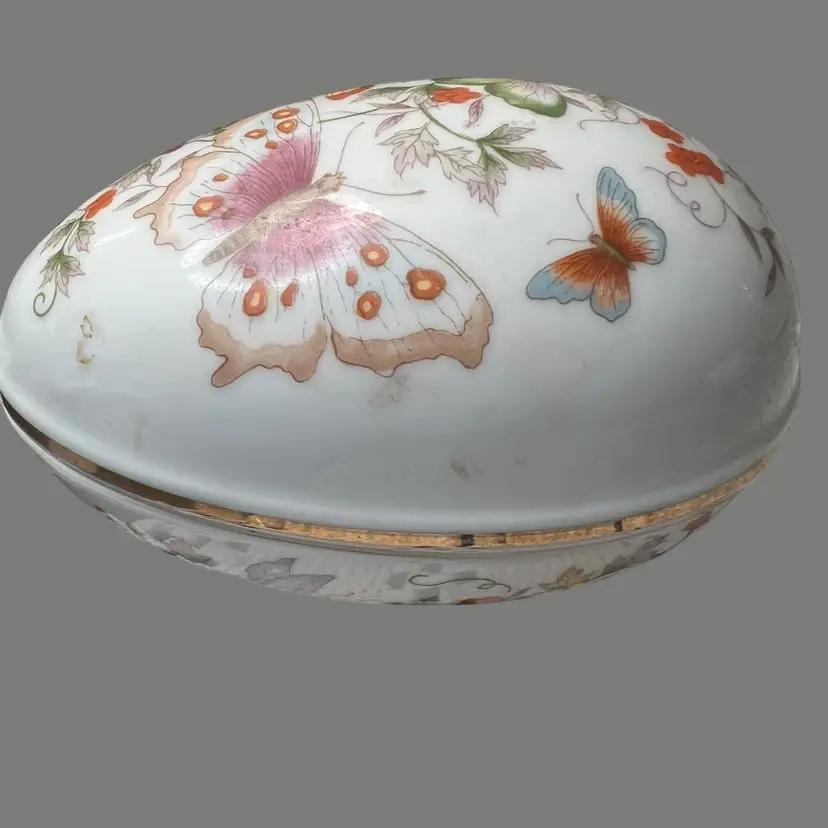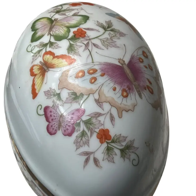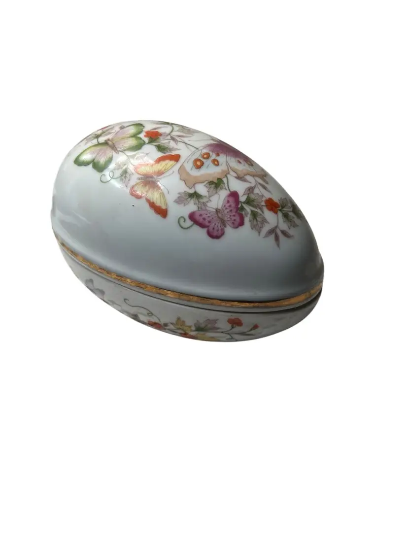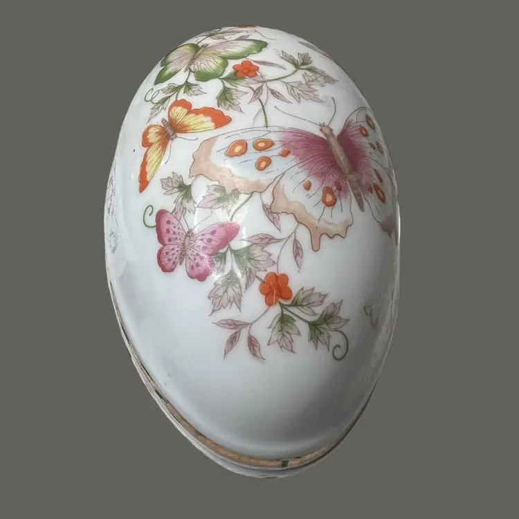009 Butterfly trinket dish/box egg shaped made for Avon 1974 5.5" x 3.5" x 4"
