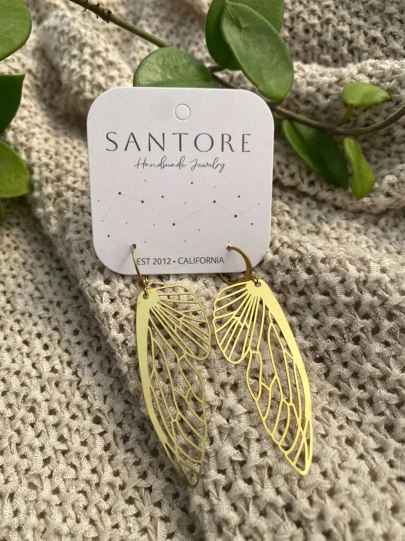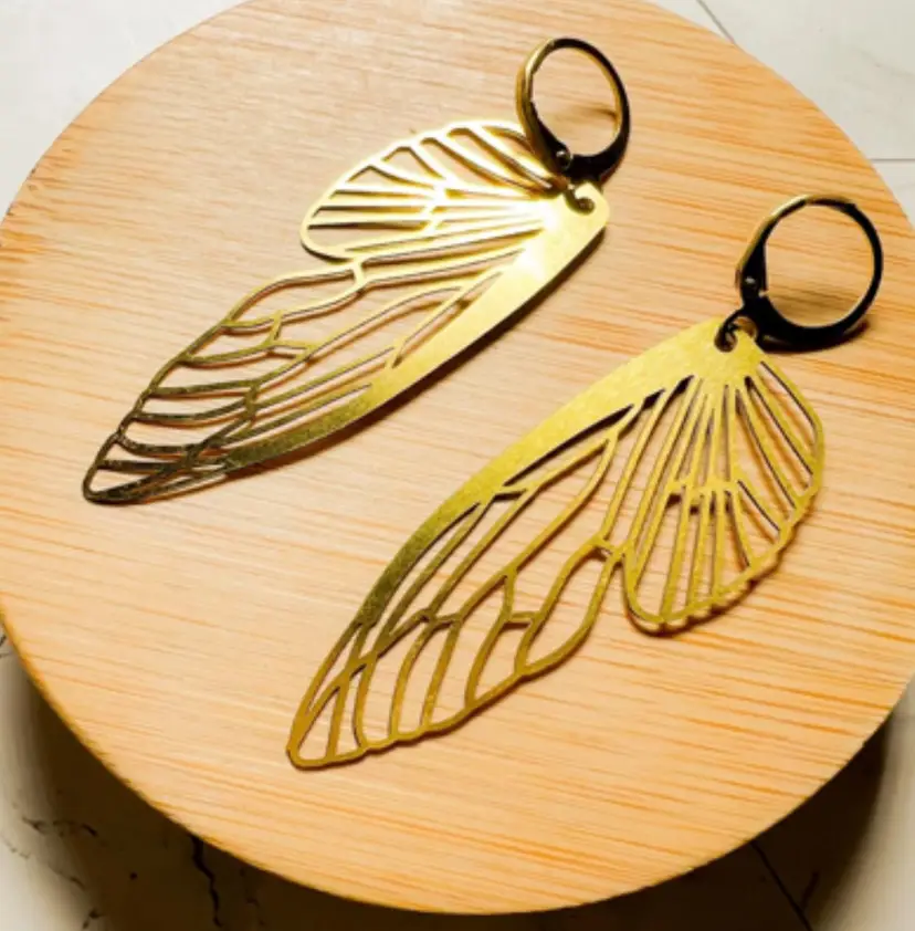 ⬩51mm x 20mm Wing shape ⬩Huggie Hoop style Brass wire ⬩2.25 inch Dangle earring