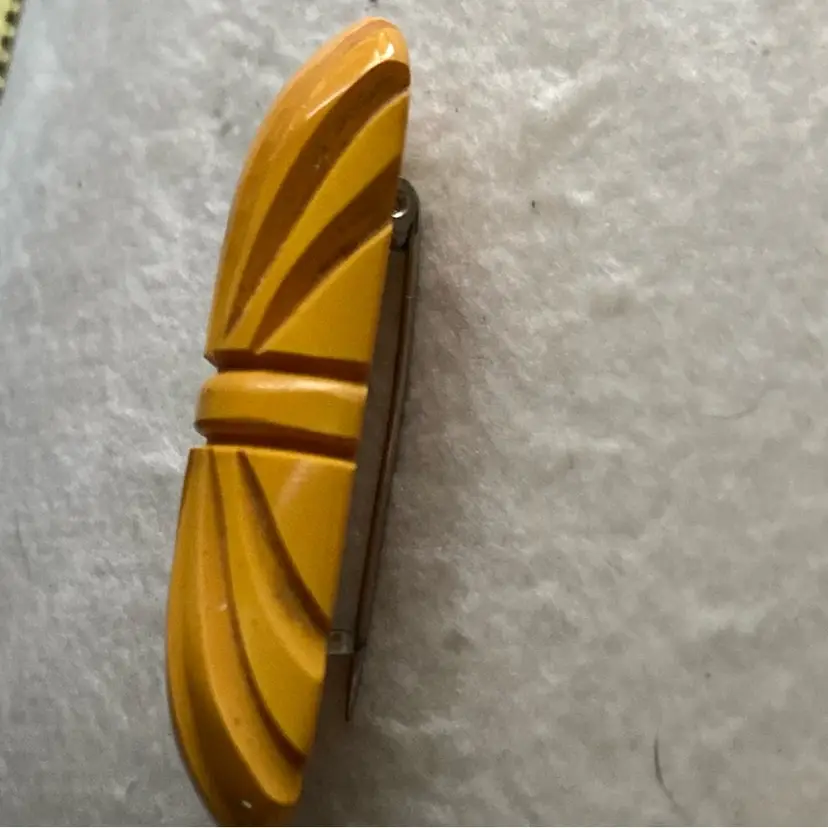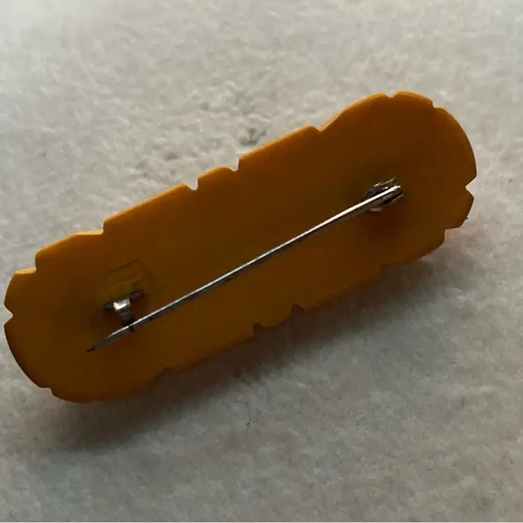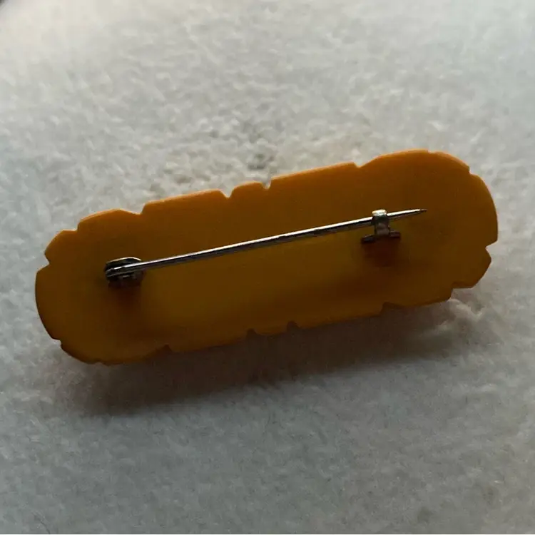 CONDITION: This is a beautiful hand carved Bakelite brooch and is in excellent vintage pre-owned condition. The finding is a C-clasp.