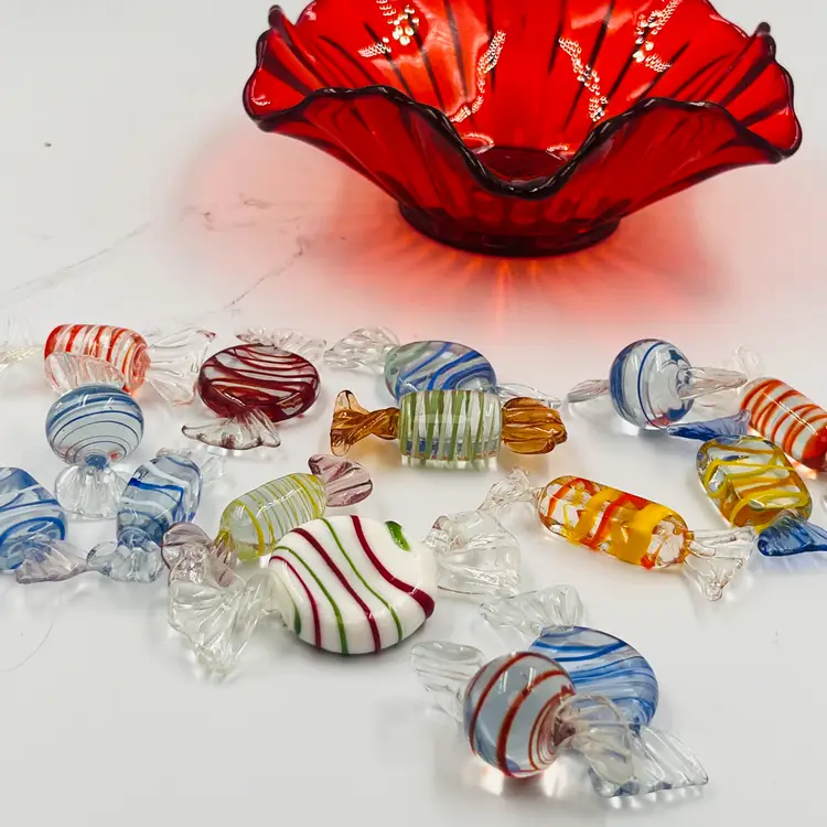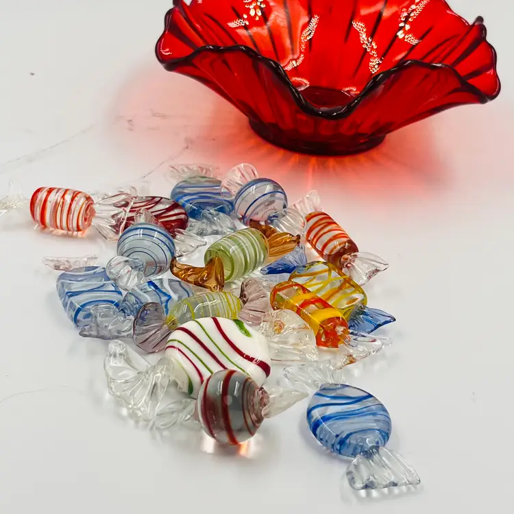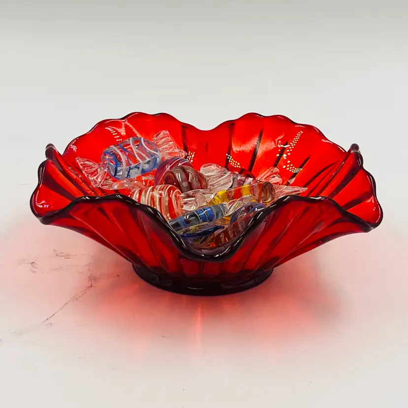 BVAMPERS - Don't Eat The Candy! Ruby Red Indiana Glass Bowl with ALL this Diet Candy